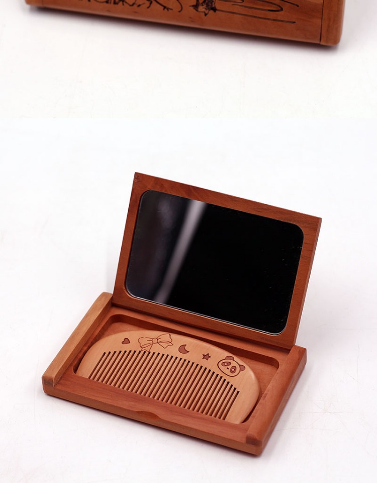 WBZ7 새로운 나무 반달 모양의 접이식 작은 거울 휴대용 여성용 복숭아 나무 빗 세트 거울 공예스토어 가기