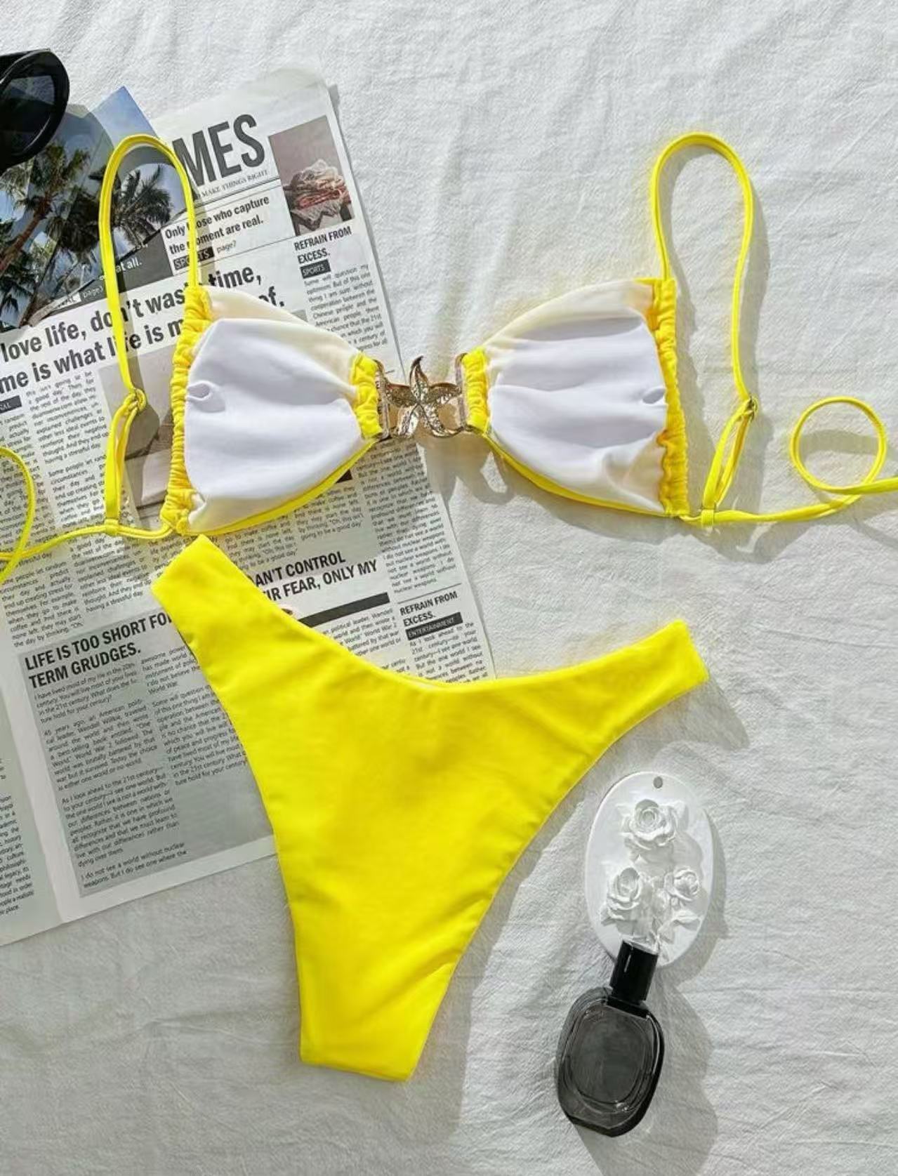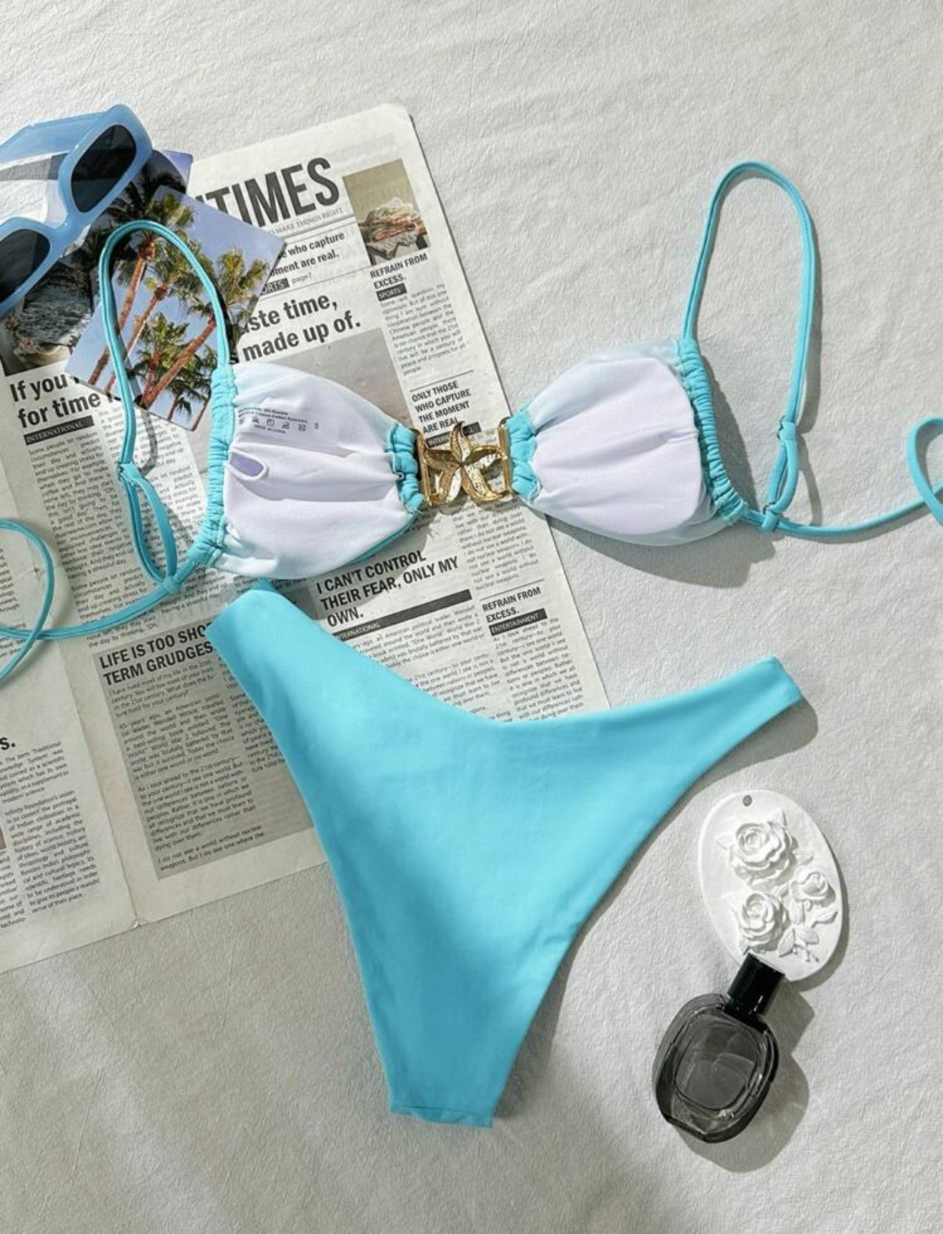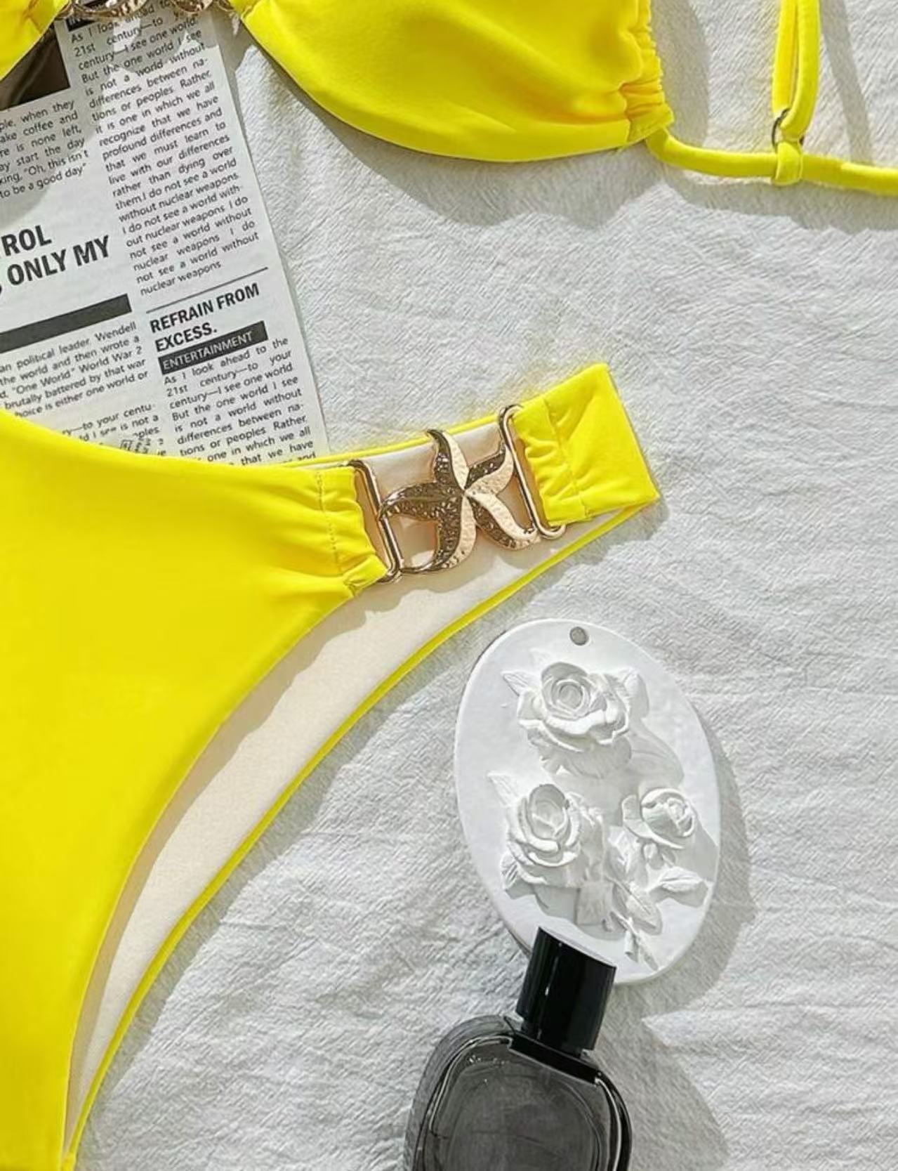 Chujian 2025 새로운 유럽과 미국의 불가사리 쥬얼리 비키니 수영복 여성 솔리드 컬러 섹시한 핫 소녀 수영복 크로스 보더 도매