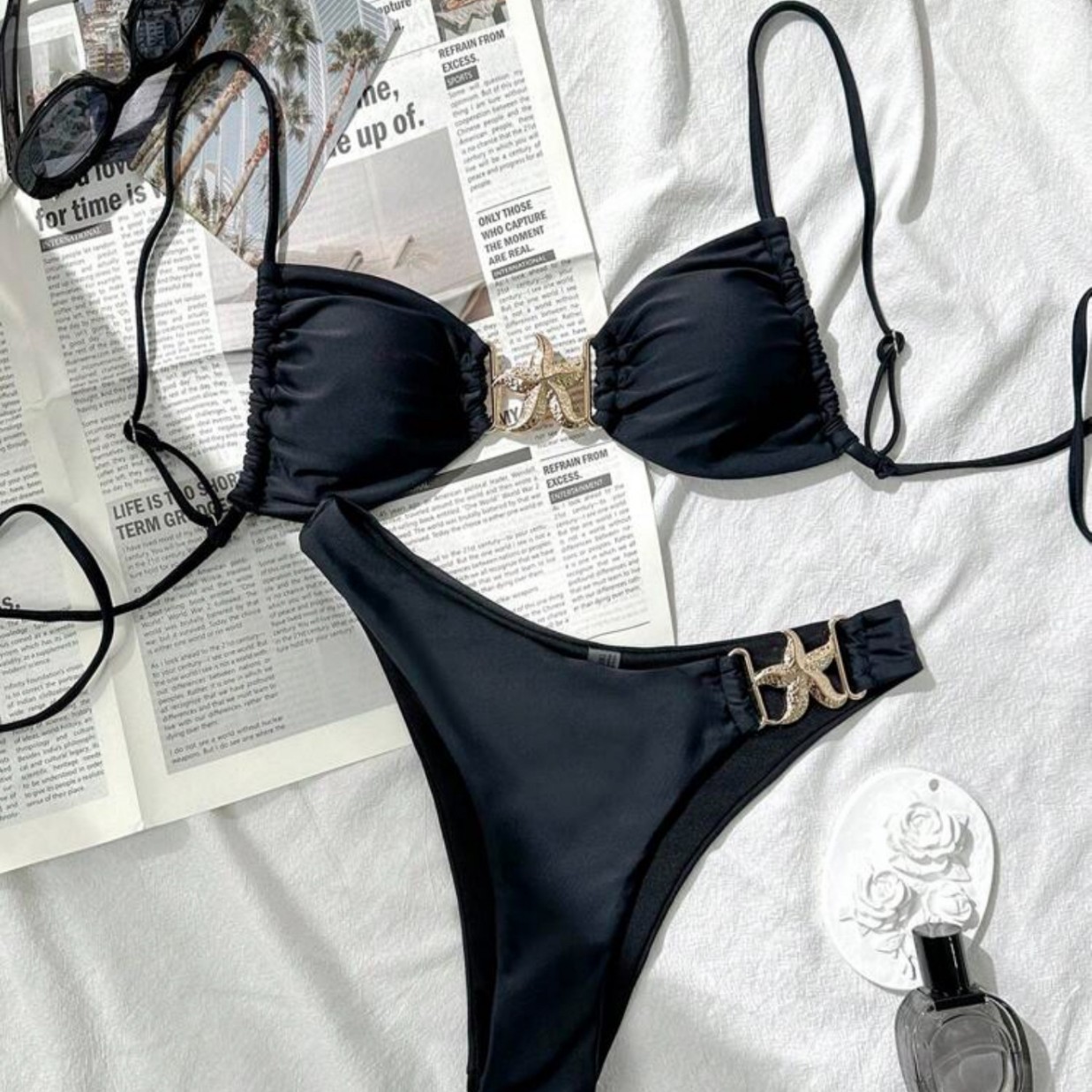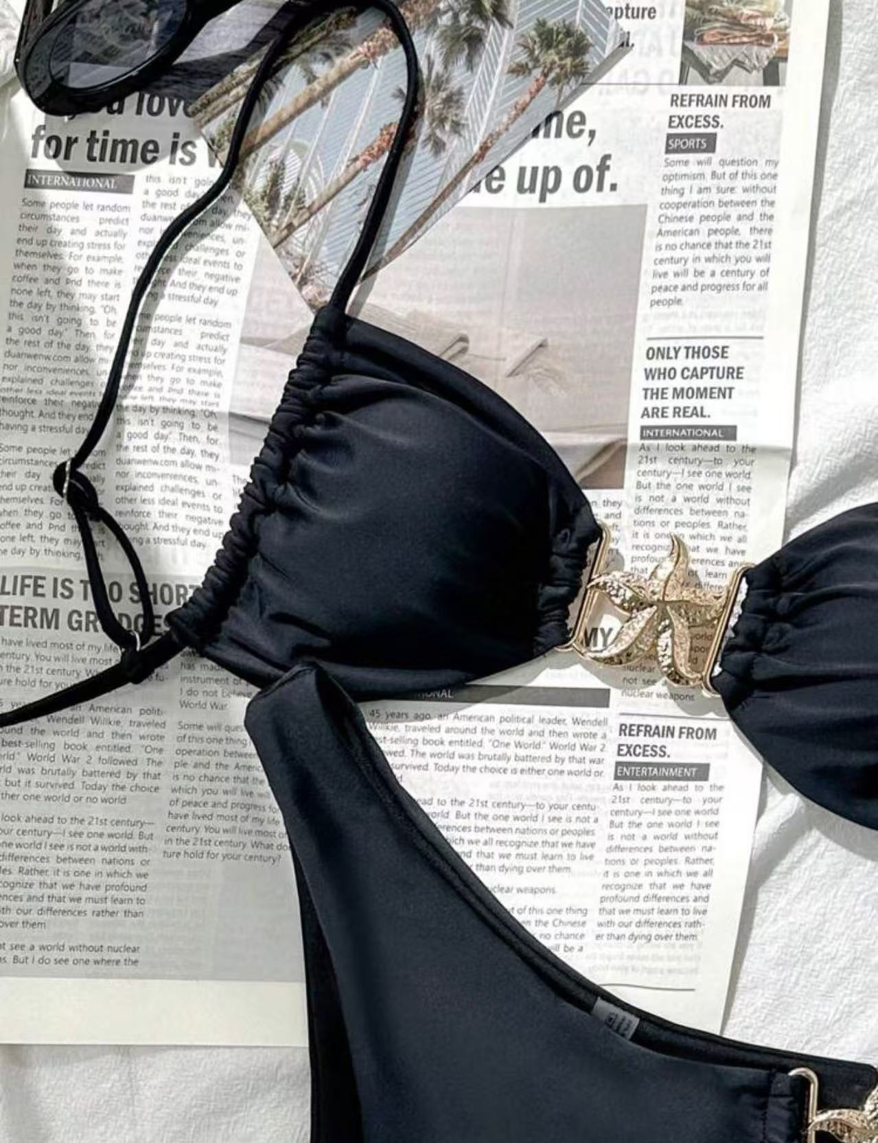 Chujian 2025 새로운 유럽과 미국의 불가사리 쥬얼리 비키니 수영복 여성 솔리드 컬러 섹시한 핫 소녀 수영복 크로스 보더 도매스토어 가기