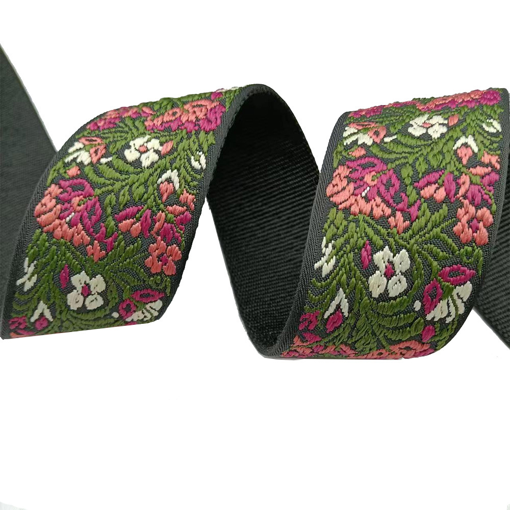 도매 폴리 에스터 코튼 민족 스타일 꽃 자카드 웨빙 복고풍 다양한 자수 색상 의류 홈 섬유 기타 벨트 액세서리