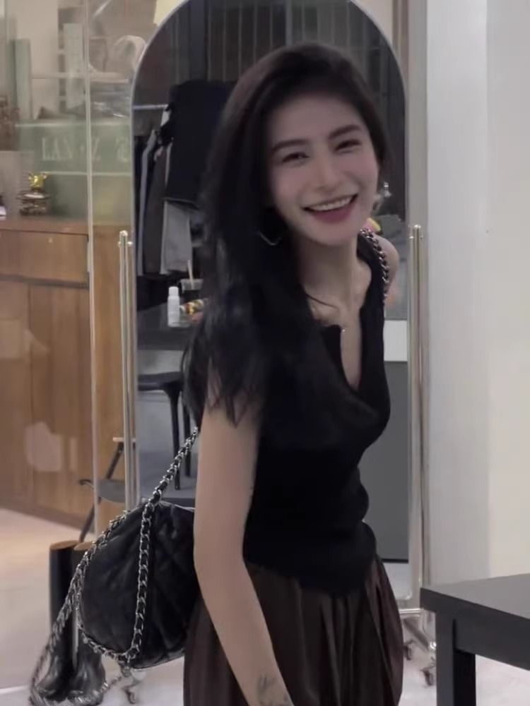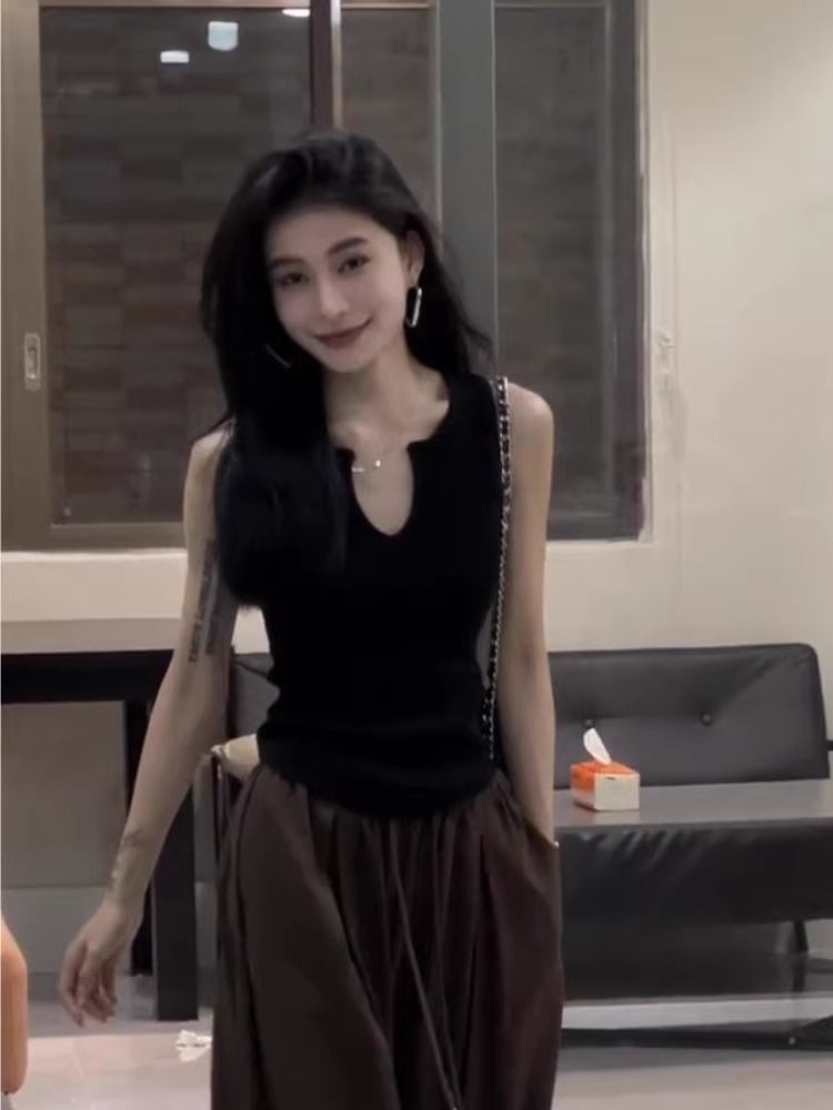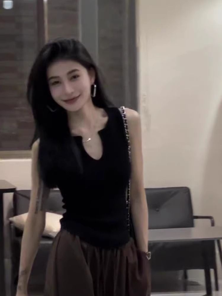 프랑스 스타일 민소매 조끼 여성 여름 디자인 센스 틈새 슬림 핏 아이스 실크 니트 셔츠 세련된 불규칙한 V 넥 탑스토어 가기