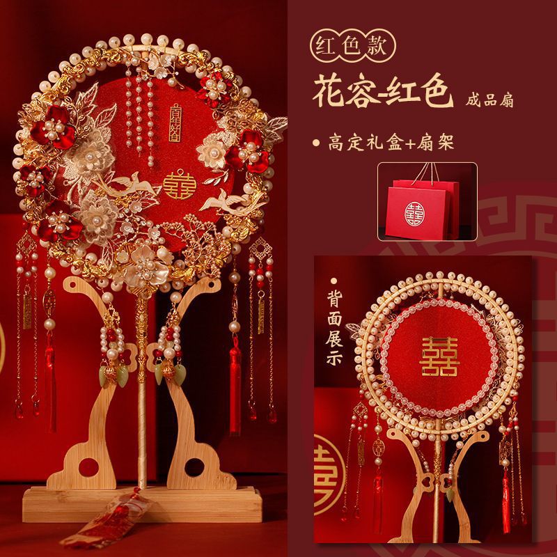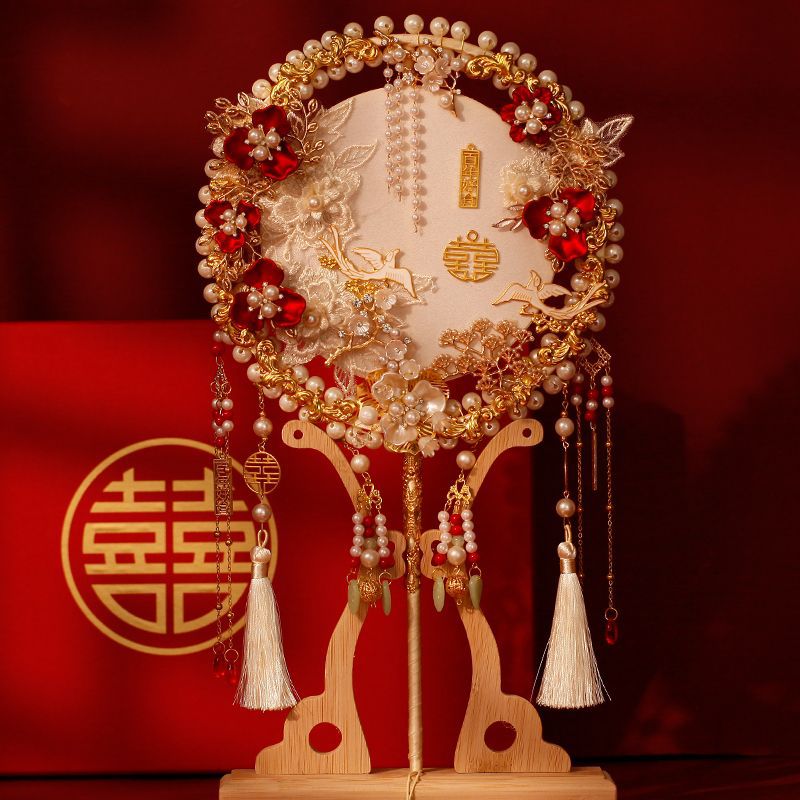 웨딩 신부 부채 샴페인 골동품 더블 서클 완제품 중국 웨딩 Xihuo 부채 수제 웨딩 부채 재료 패키지스토어 가기