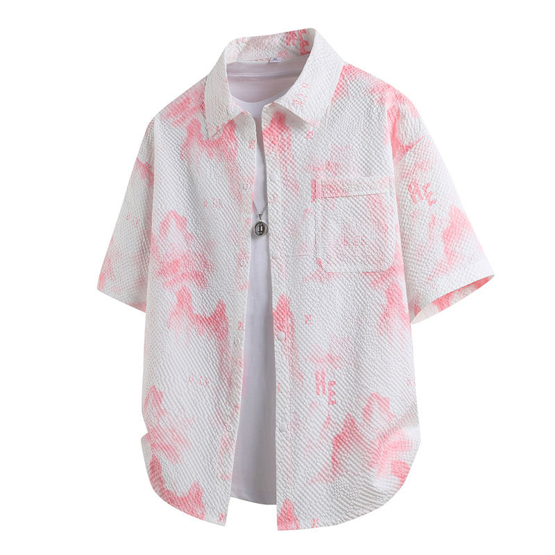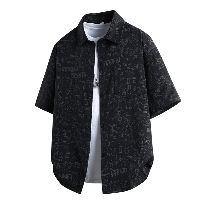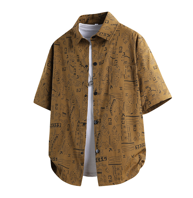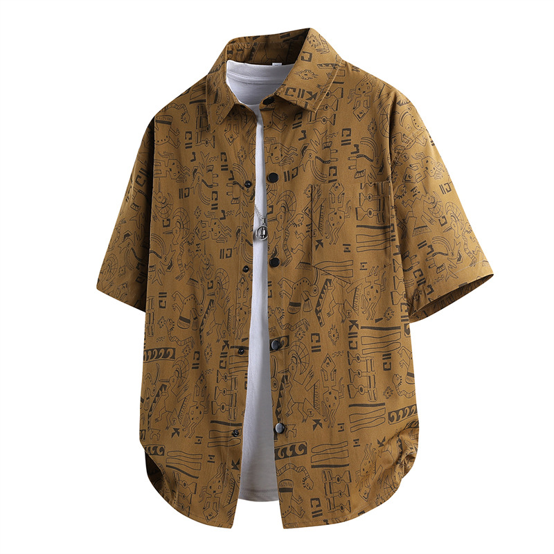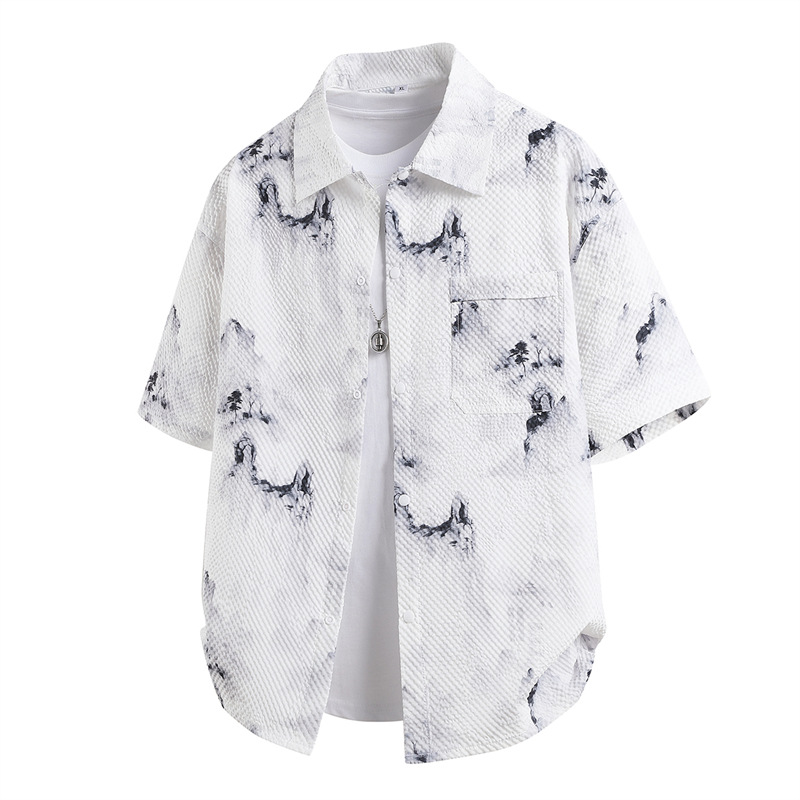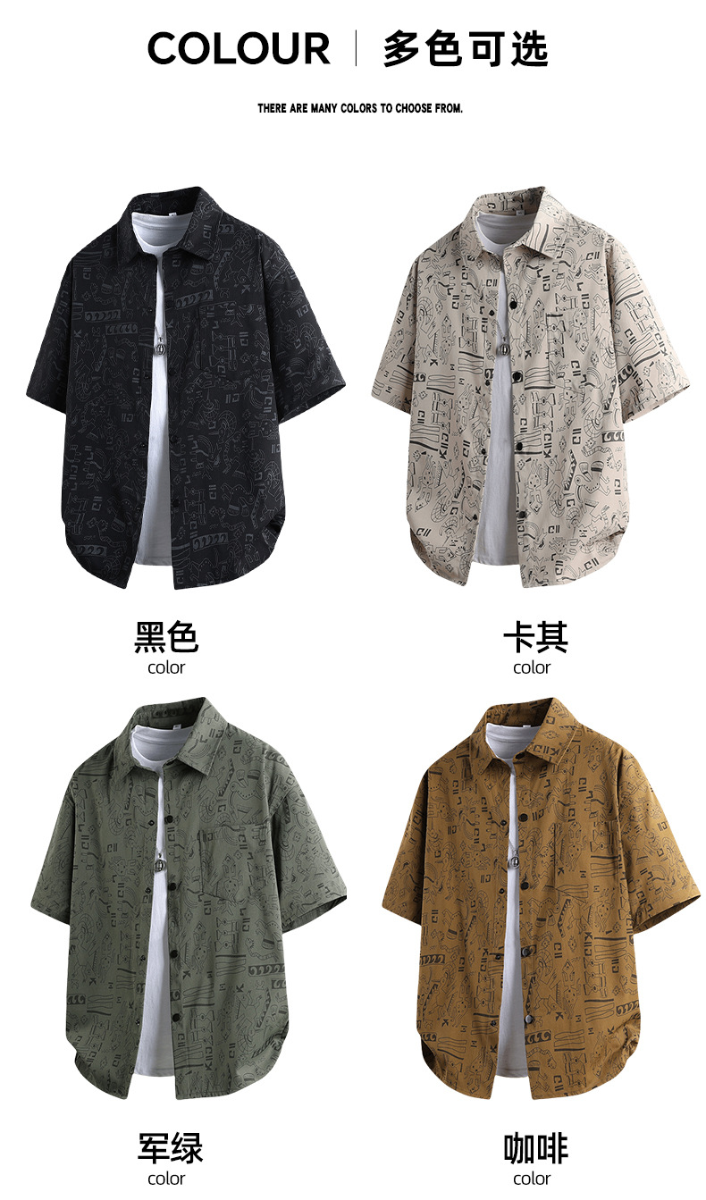 플러스 사이즈 인쇄 된 옷깃 짧은 소매 셔츠 남자의 2025 새로운 봄과 여름 툴링 패션 브랜드 플러스 지방 플러스 사이즈 지방 셔츠스토어 가기