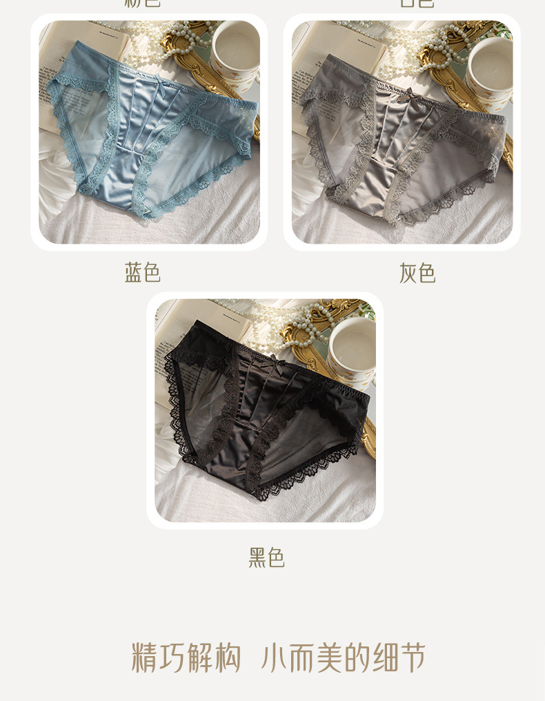 메쉬 섹시한 레이스 새틴 스플라이싱 편안한 중간 허리 이음매없는 순수 코튼 가랑이 중간 허리 팬티 여성용 얇은 엉덩이 커버