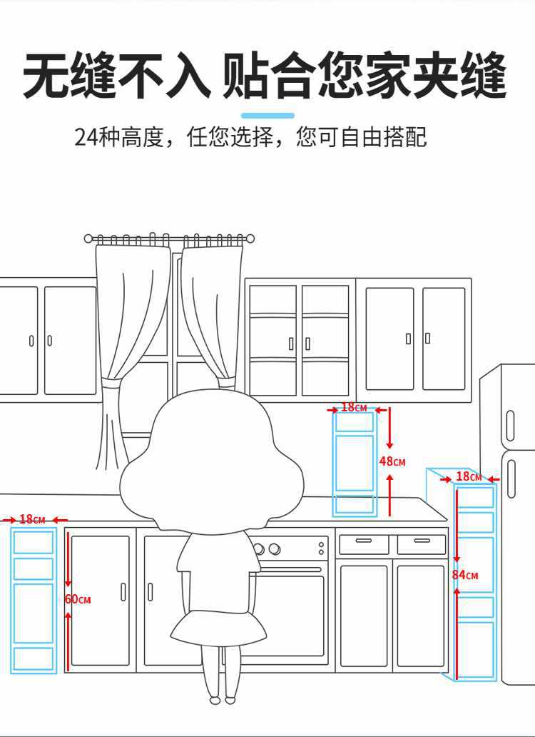 18CM 틈새 수납 캐비닛 서랍형 틈새 캐비닛 플라스틱 욕실 초소형 주방 틈새 수납 선반