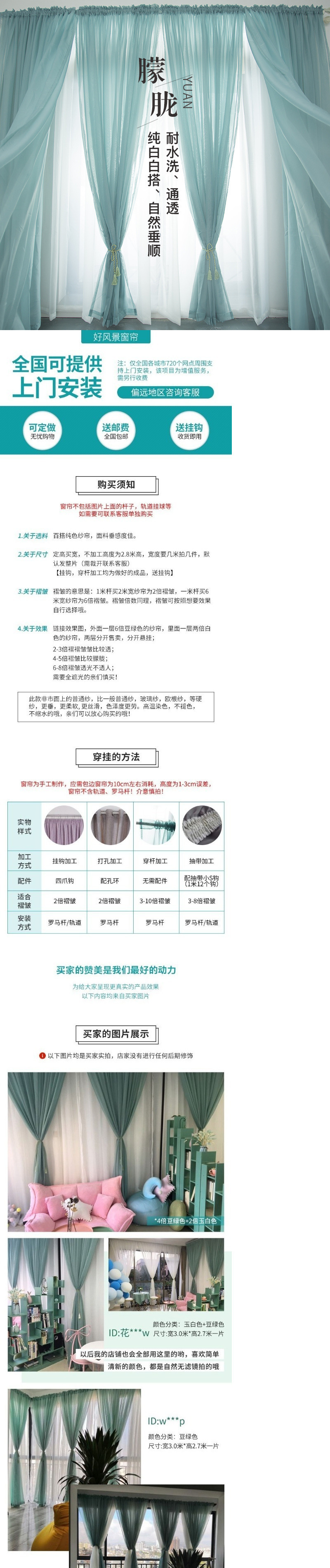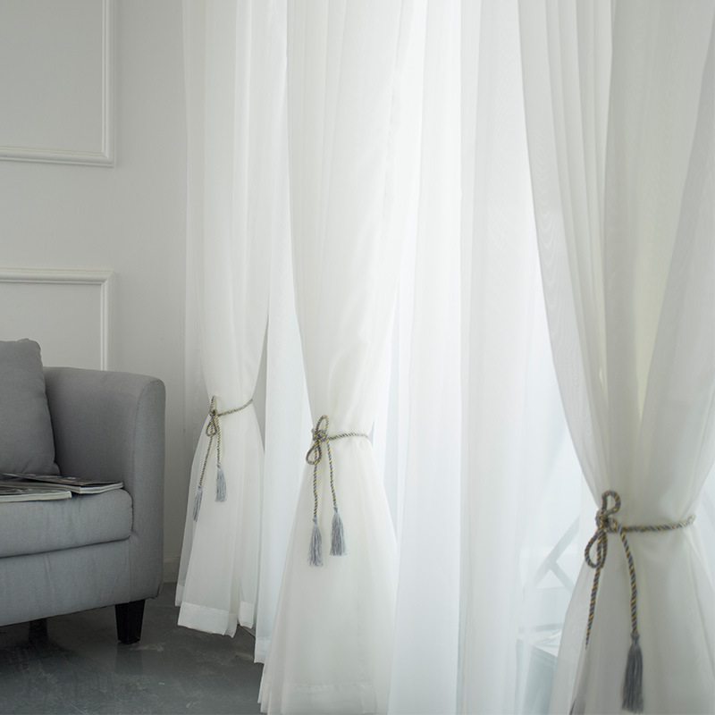 커튼 완제품 창 스크린 얇은 명주 그물 목가적 인 간단한 발코니 거실 침실 차광 벌크창 흰색 거즈 판타지 거즈 커튼 암호화스토어 가기