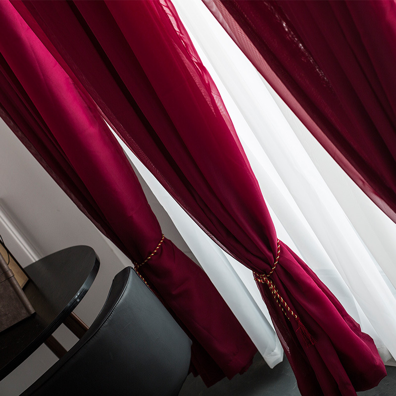 커튼 완제품 창 스크린 얇은 명주 그물 목가적 인 간단한 발코니 거실 침실 차광 벌크창 흰색 거즈 판타지 거즈 커튼 암호화