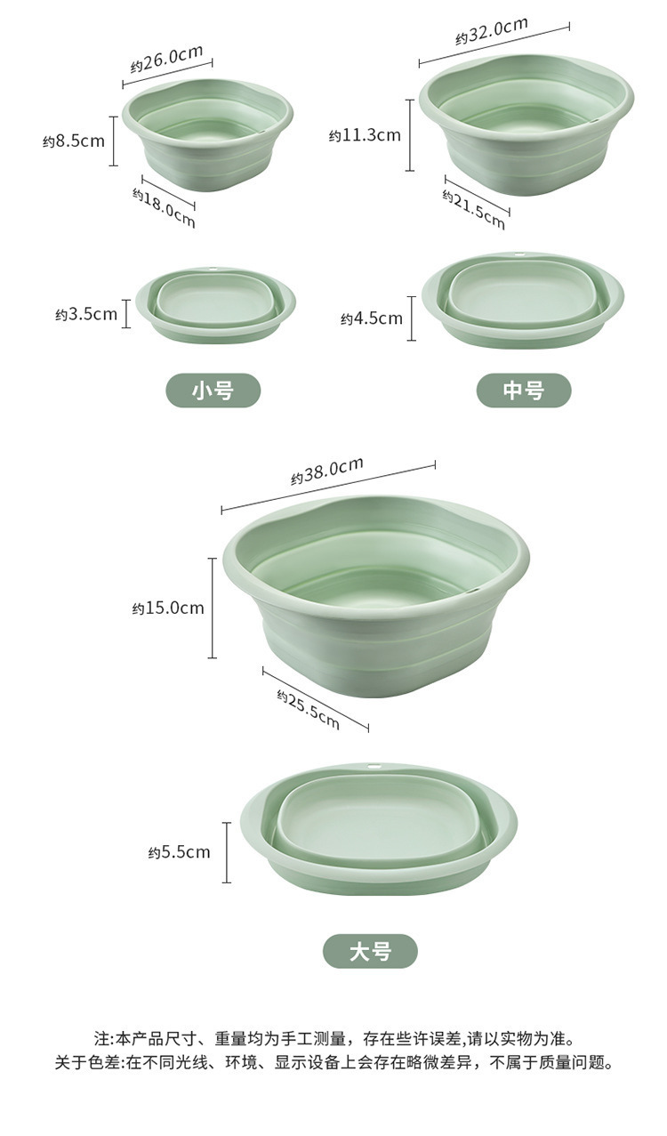 확장 가능한 접이식 세면대 휴대용 압축 분지 세탁기 실리콘 여행 초경량 가정용 물 분지 대형 중형