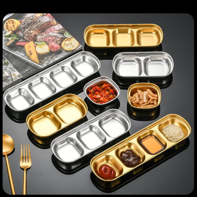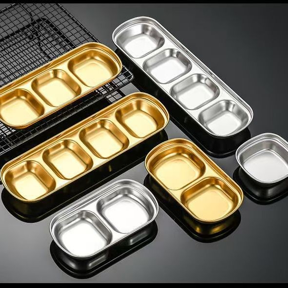 304 스테인레스 스틸 바베큐 딥 플레이트 한국 양념 플레이트 스플릿 핫 팟 소스 딥 플레이트 레스토랑 식초 플레이트 골드