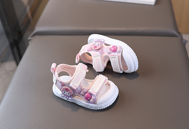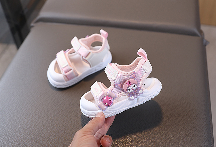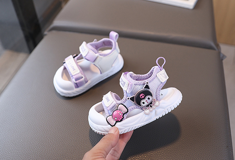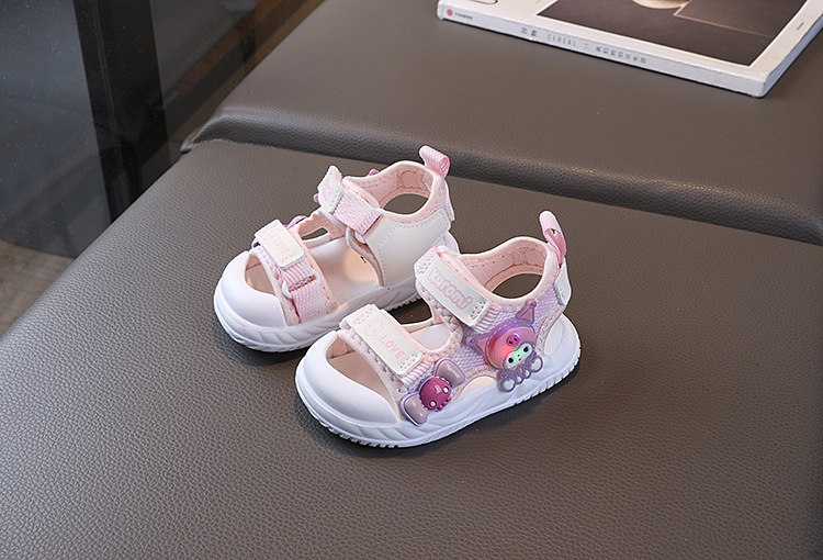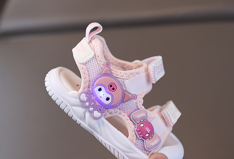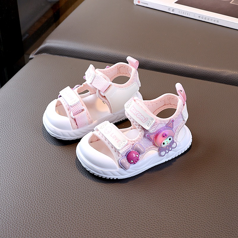 소녀 샌들 2025 여름 새로운 아기 소녀 신발 공주 샌들 만화 플래시 라이트 소프트 하단 유아 비치 신발스토어 가기