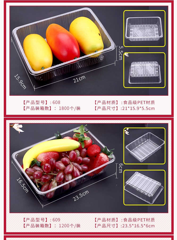 일회용 투명 과일 및 야채 두껍게 덮지 않은 포장 상자 로스트 오리 상자 플라스틱 신선한 유지 직사각형 무료 배송 요리 식품