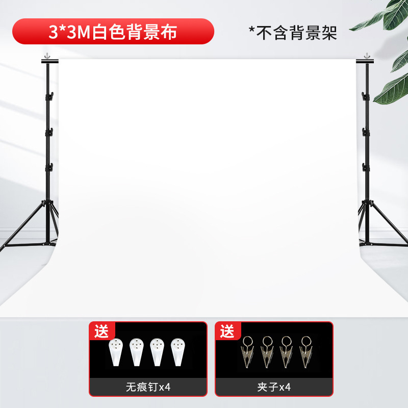• 3× 3m 흰색 배경 천(자취 없는 네일 클립 4개 포함)-1x1cm