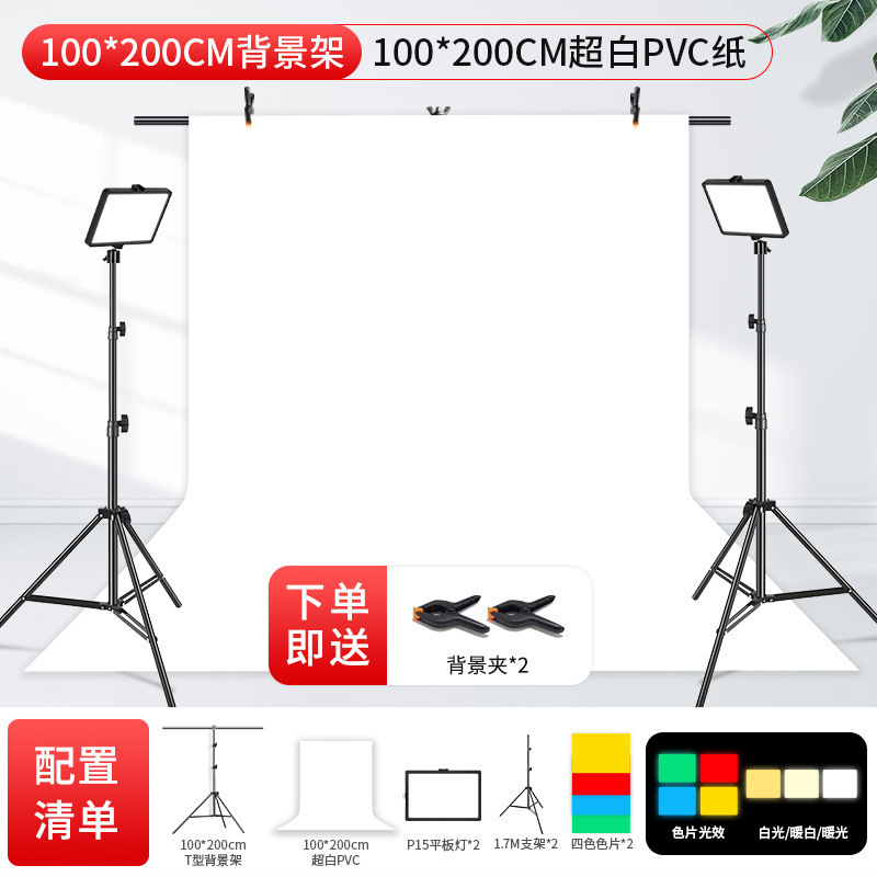 • 100*200CM 배경 스탠드 + 120*200CM 초백색 PVC 종이(강력 클립 보내기)-1x1
