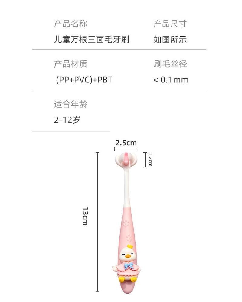 어린이용 칫솔, 귀여운 만화 삼면 칫솔, 영유아용 특수 칫솔, 어린이용 초연모 칫솔