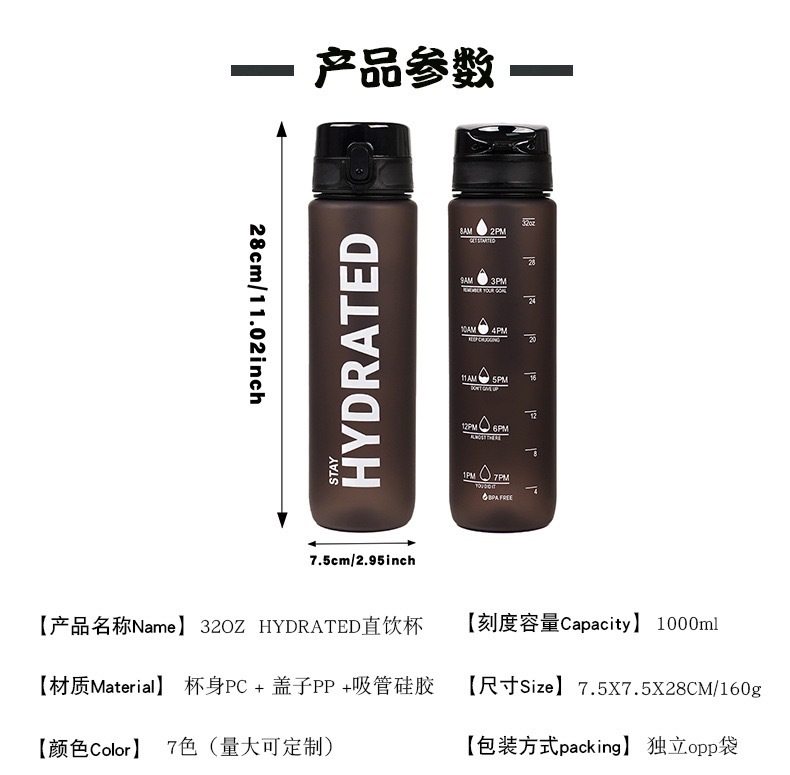 제조업체의 핫 세일 도매 스포츠 워터 컵 대용량 그라데이션 물병 남성과 여성 피트니스 등산 휴대용 텀블러스토어 가기