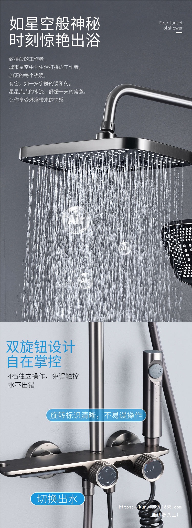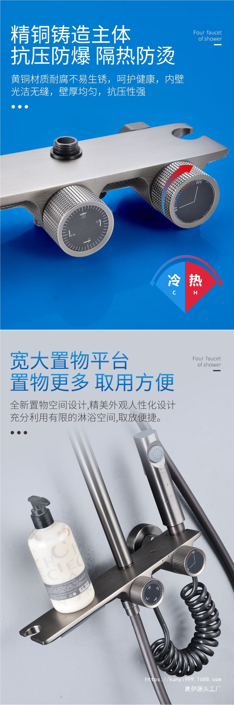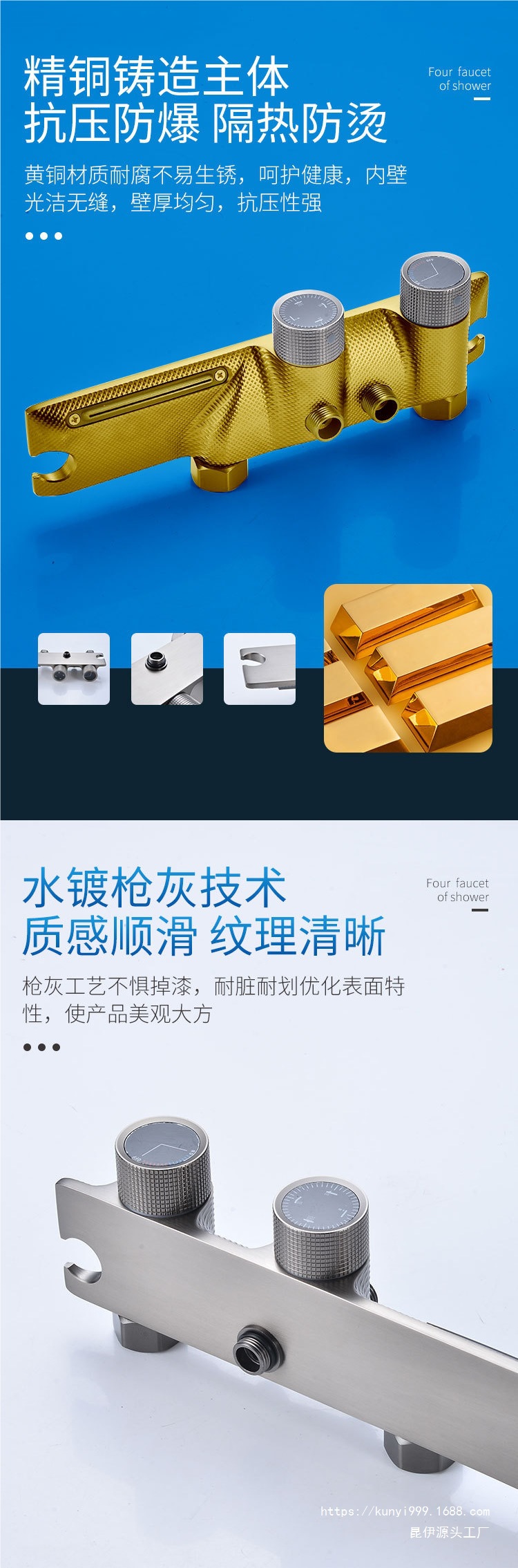 Nine᷂ 목왕 총 회색 레인 샤워 세트 전체 구리 가정용 샤워 및 목욕 세트 항온 욕실 미니멀리스트 꽃스토어 가기