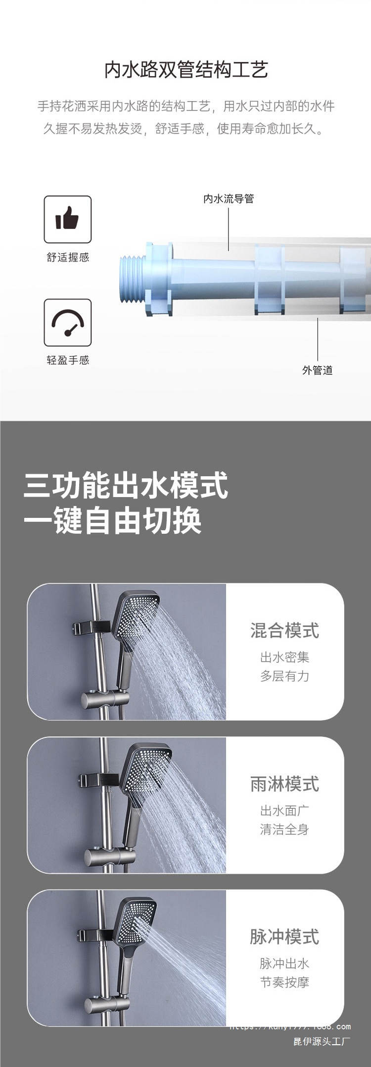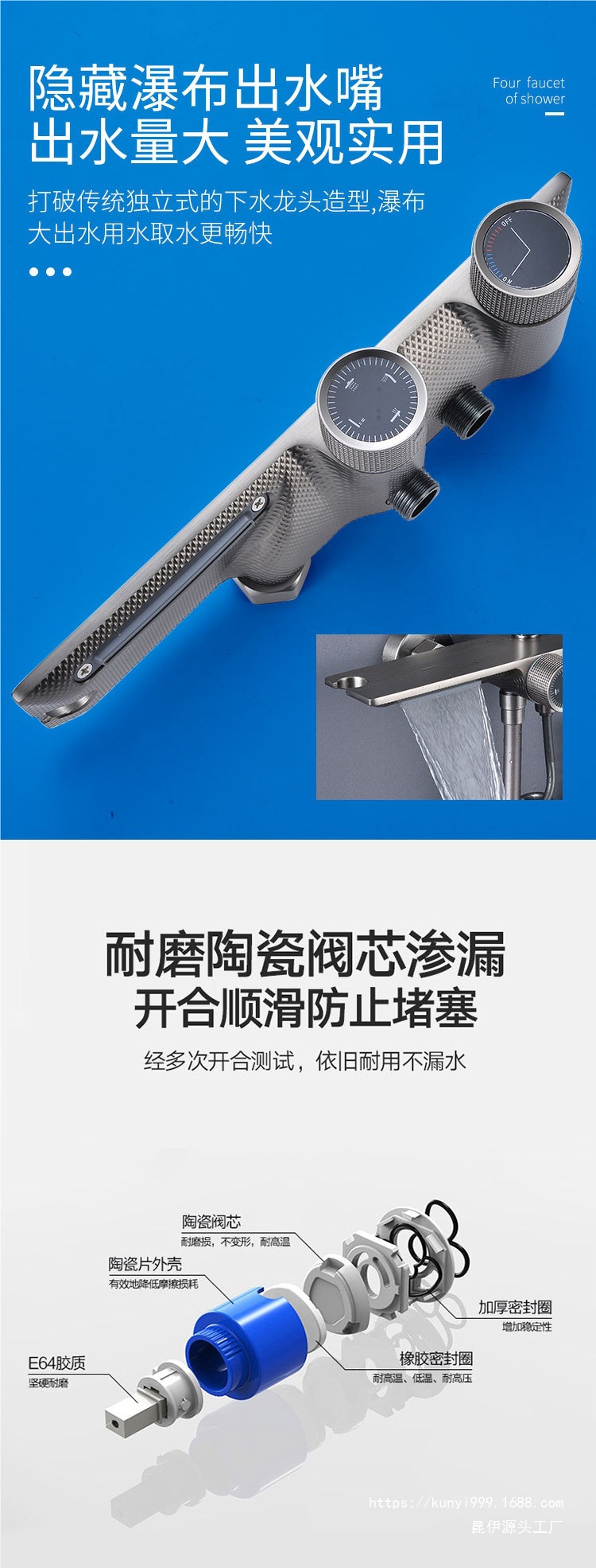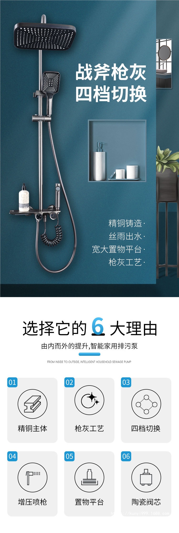 Nine᷂ 목왕 총 회색 레인 샤워 세트 전체 구리 가정용 샤워 및 목욕 세트 항온 욕실 미니멀리스트 꽃스토어 가기