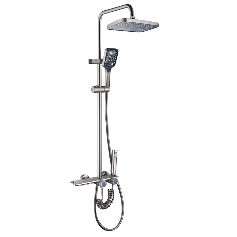 Nine᷂ 목왕 총 회색 레인 샤워 세트 전체 구리 가정용 샤워 및 목욕 세트 항온 욕실 미니멀리스트 꽃