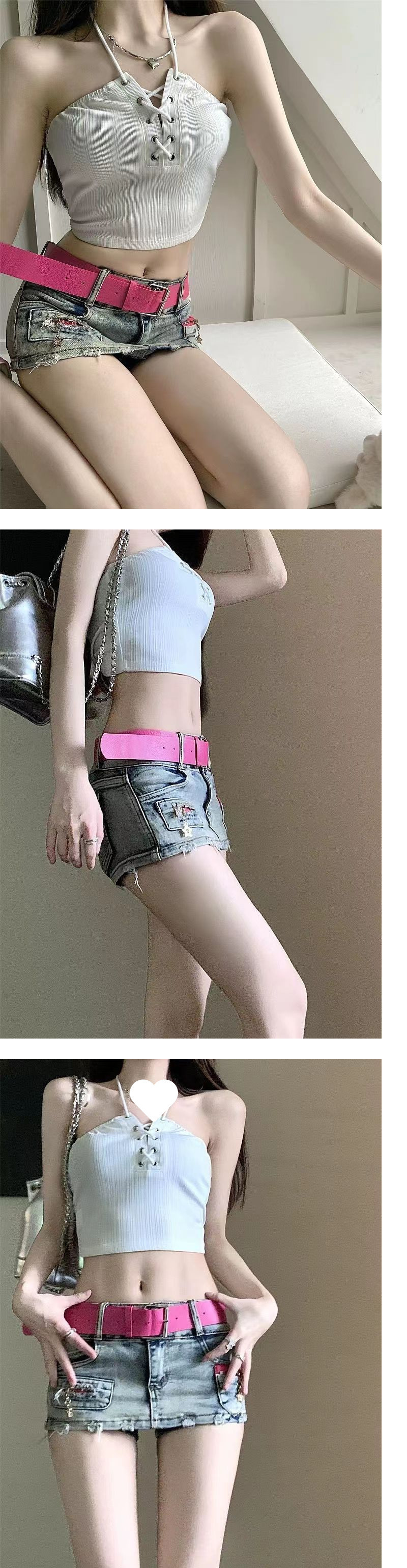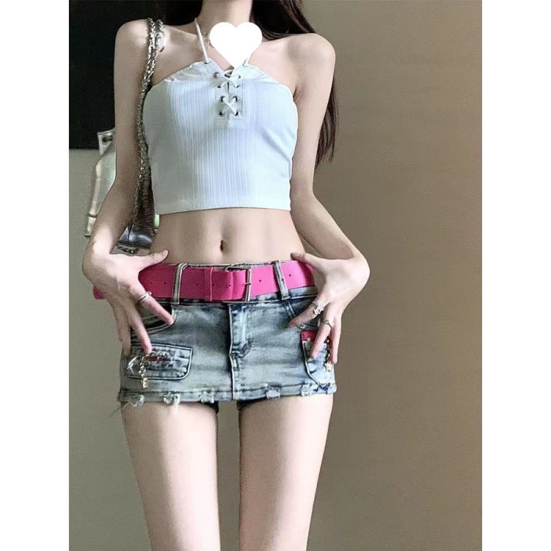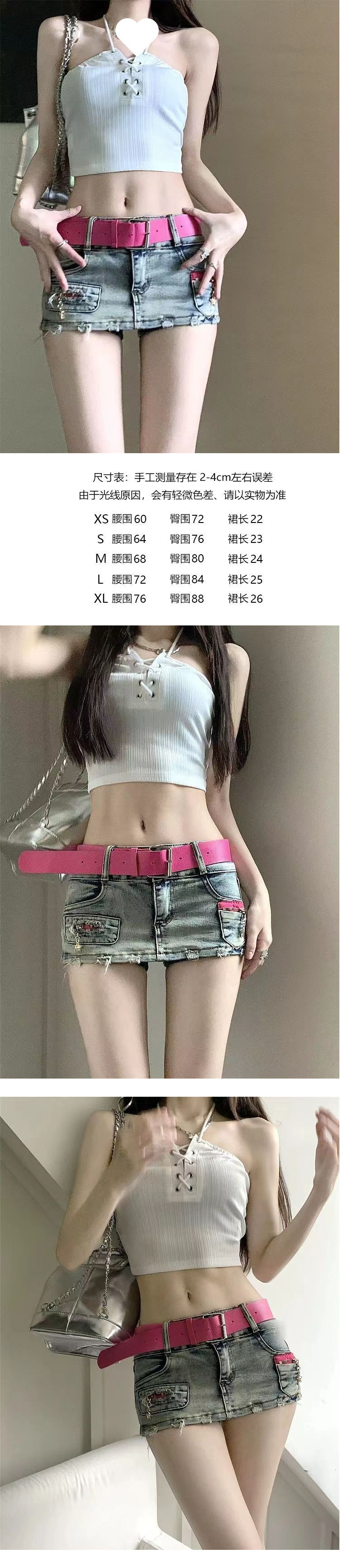 2025 핫걸 디스트레스드 데님 미니 스커트 여성 여름 신작 헤비 디자인 신축성 있는 로우 웨이스트 노출 방지 엉덩이 커버스토어 가기