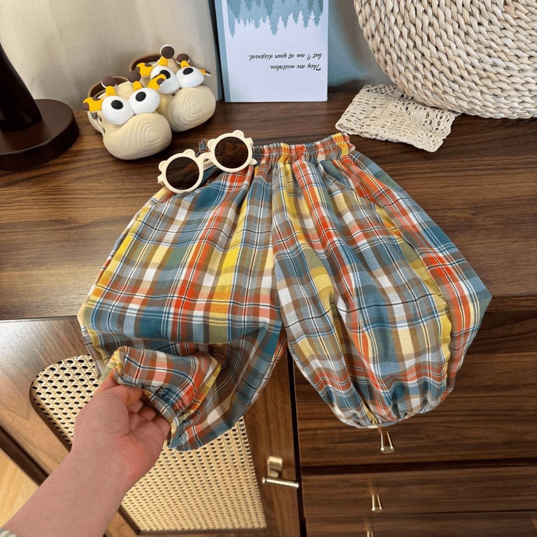 어린이 반팔 체크 무늬 안티 모기 바지 세트 여름 새 소년과 소녀 아기 티셔츠 바지 재킷 투피스 유행 세트