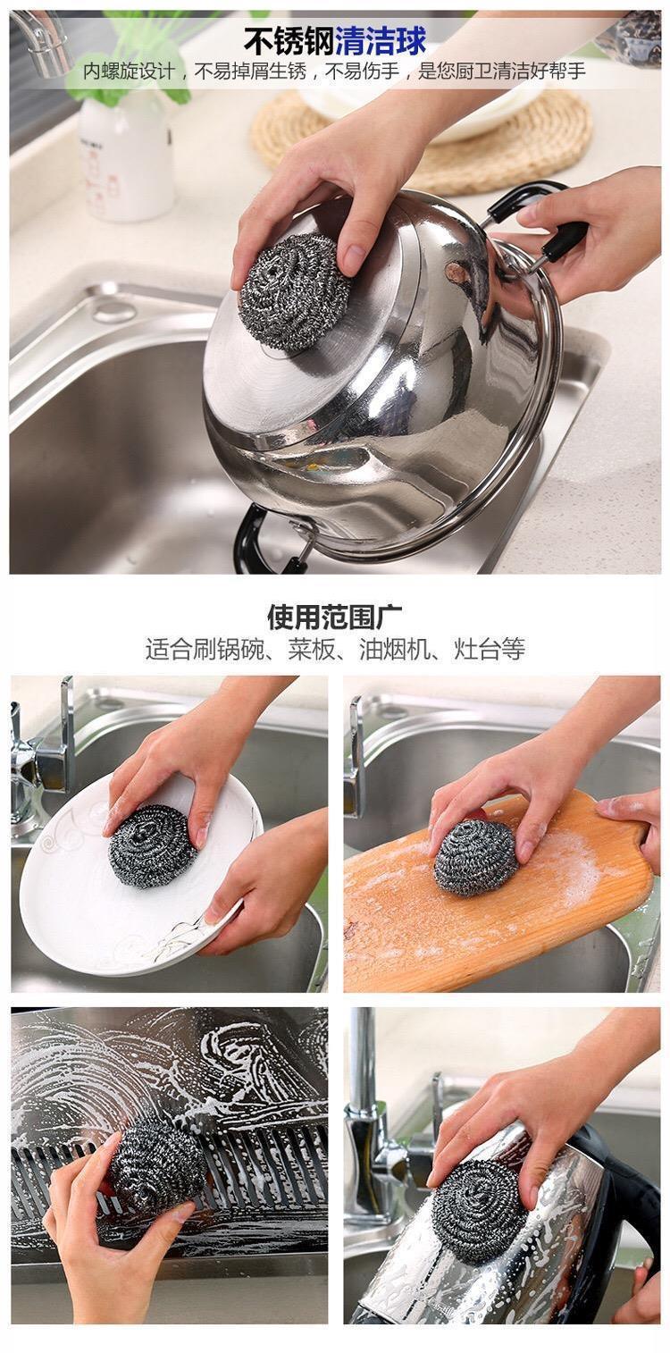 스테인리스 스틸 와이어볼 도매 냄비 세척 브러시, 설거지용 손잡이 브러시, 청소용 볼, 주방용품스토어 가기