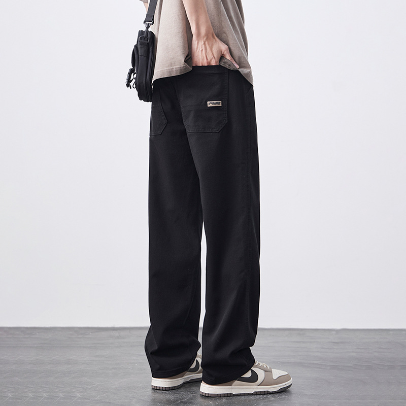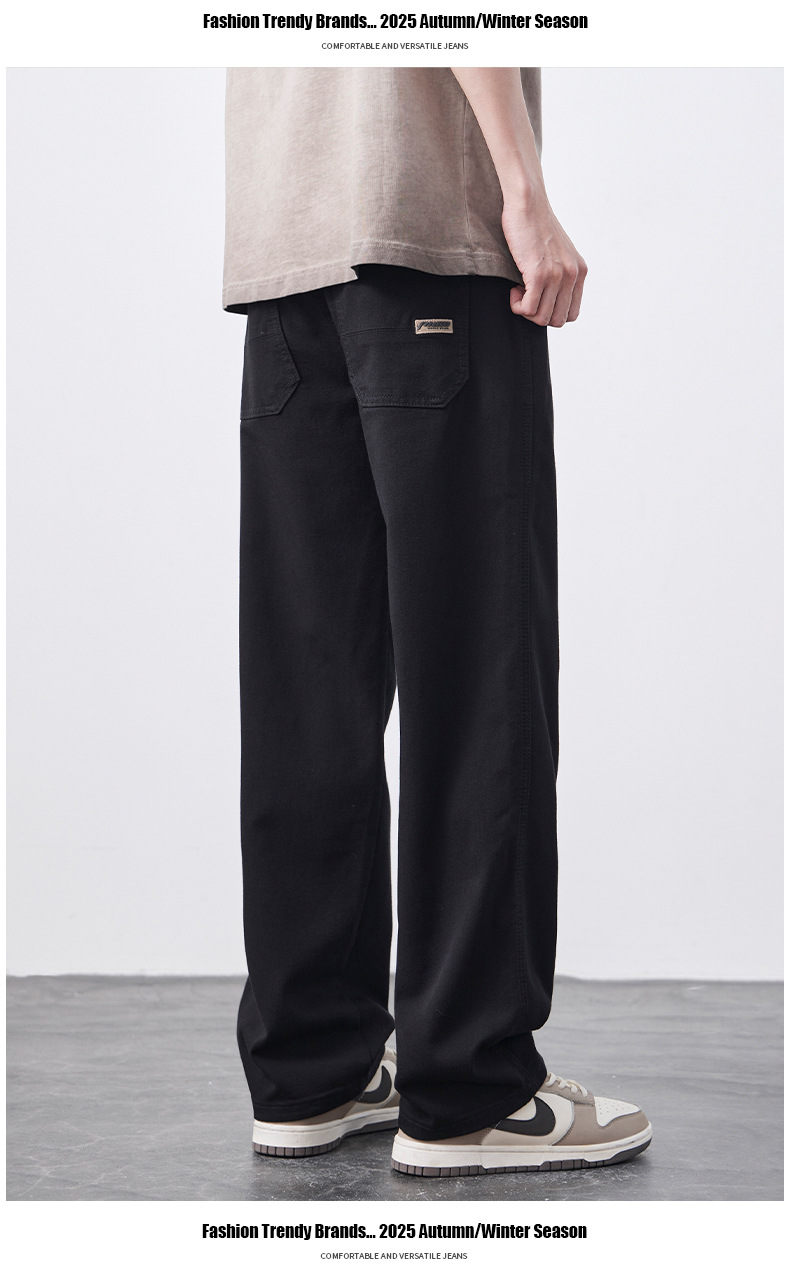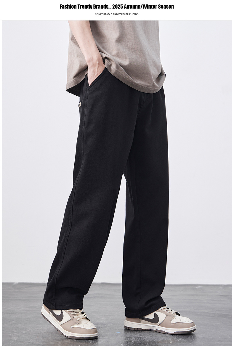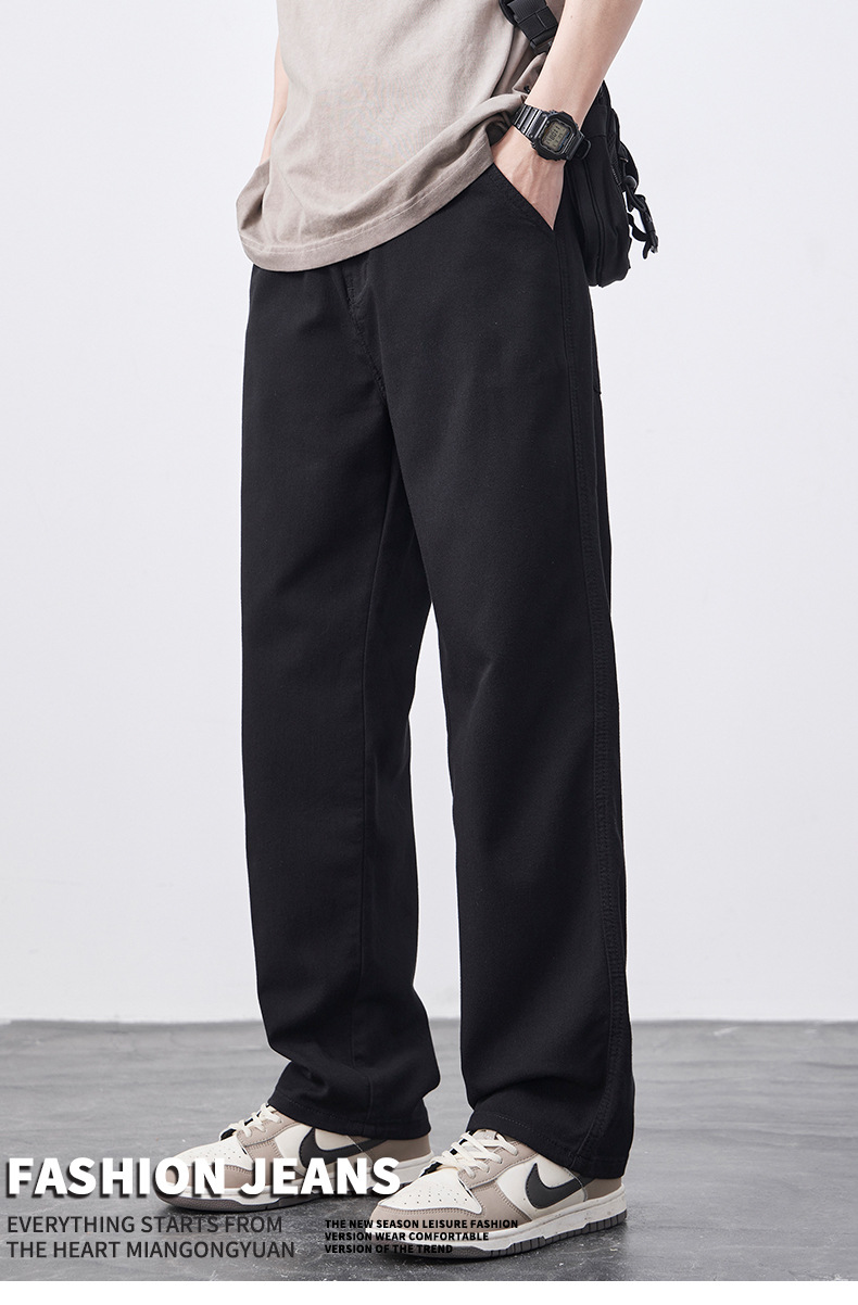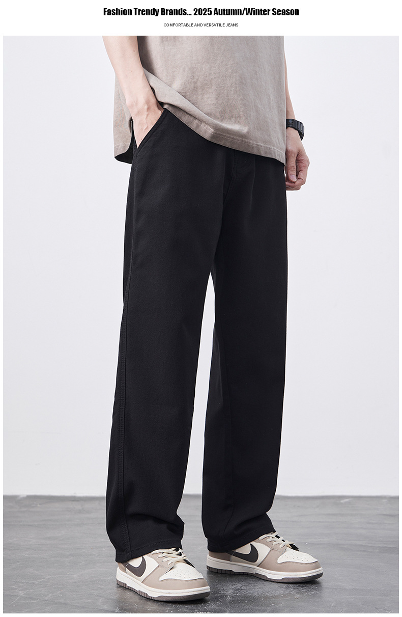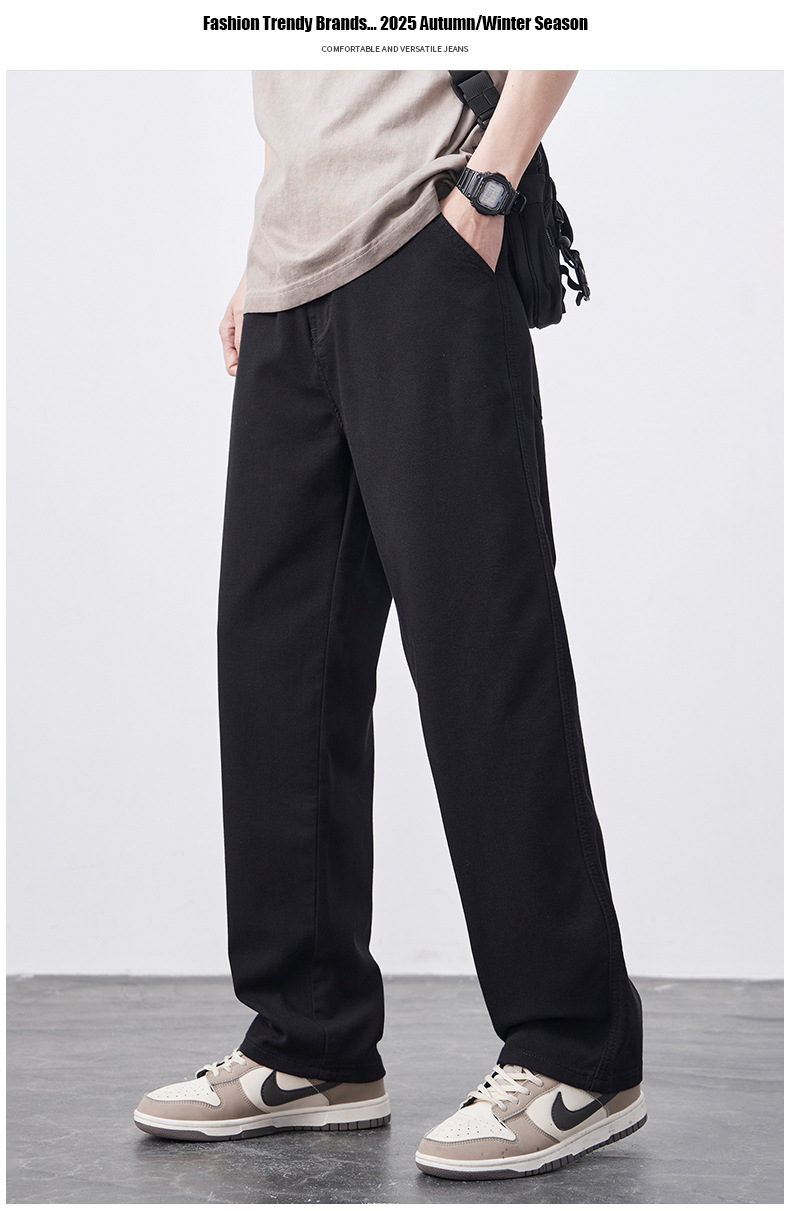 안티 페이드 Lyocell 블랙 청바지 남성 봄과 여름 2025 새로운 미국 스타일 복고풍 느슨한 스트레이트 바지스토어 가기