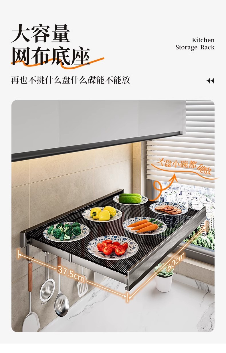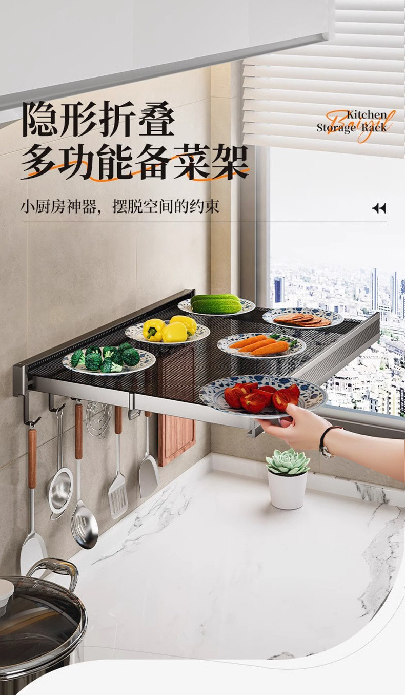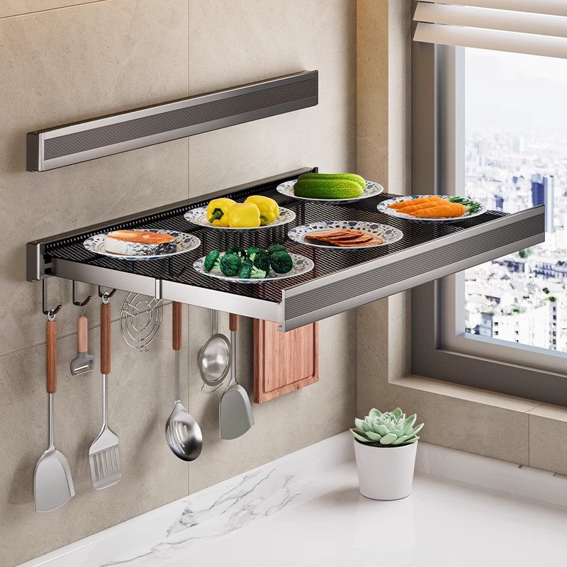 주방 접이식 조리대, 수납선반, 수납물품, 공간절약형, 다기능 벽면, 보이지 않는 반찬, 벽걸이형스토어 가기