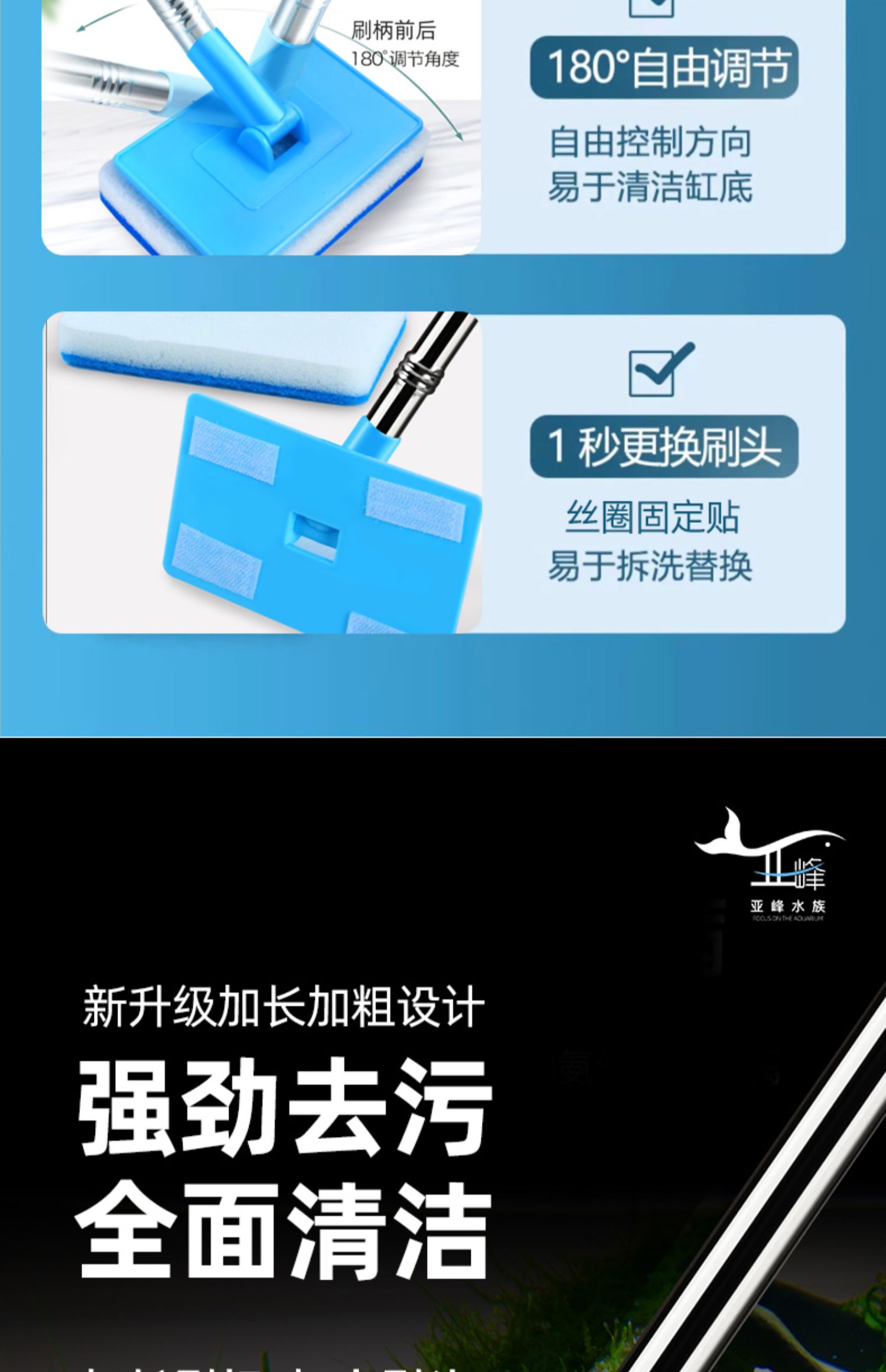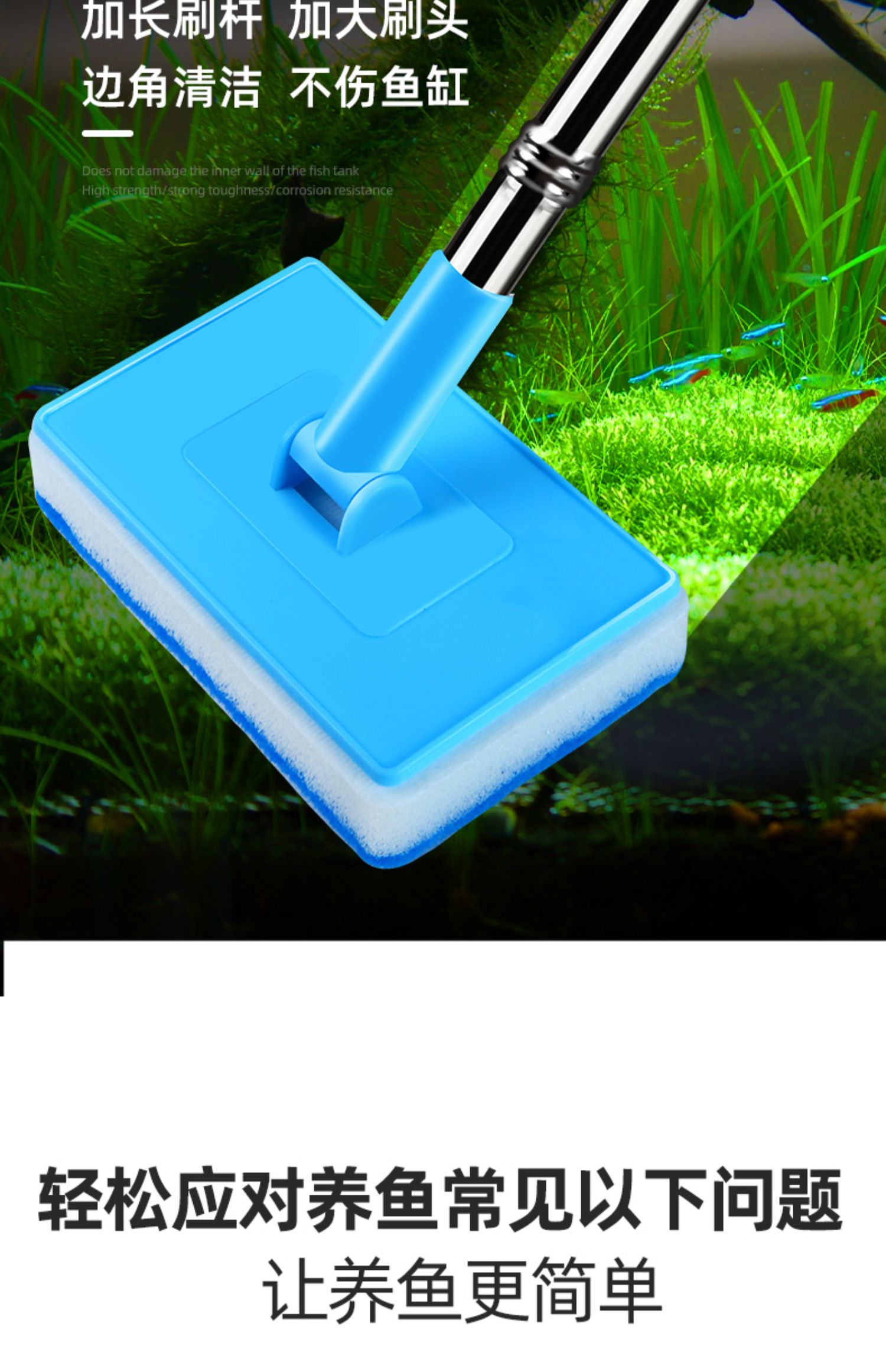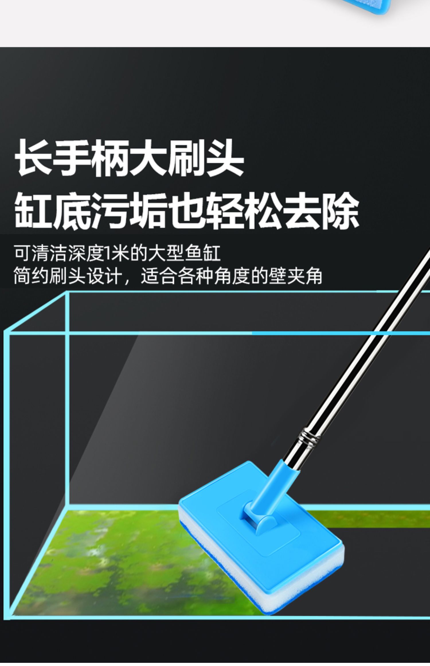 3MLE 수조 브러시 청소 긴 손잡이 데드 코너 없음 청소 도구 유리 내부 벽 청소 및 제거