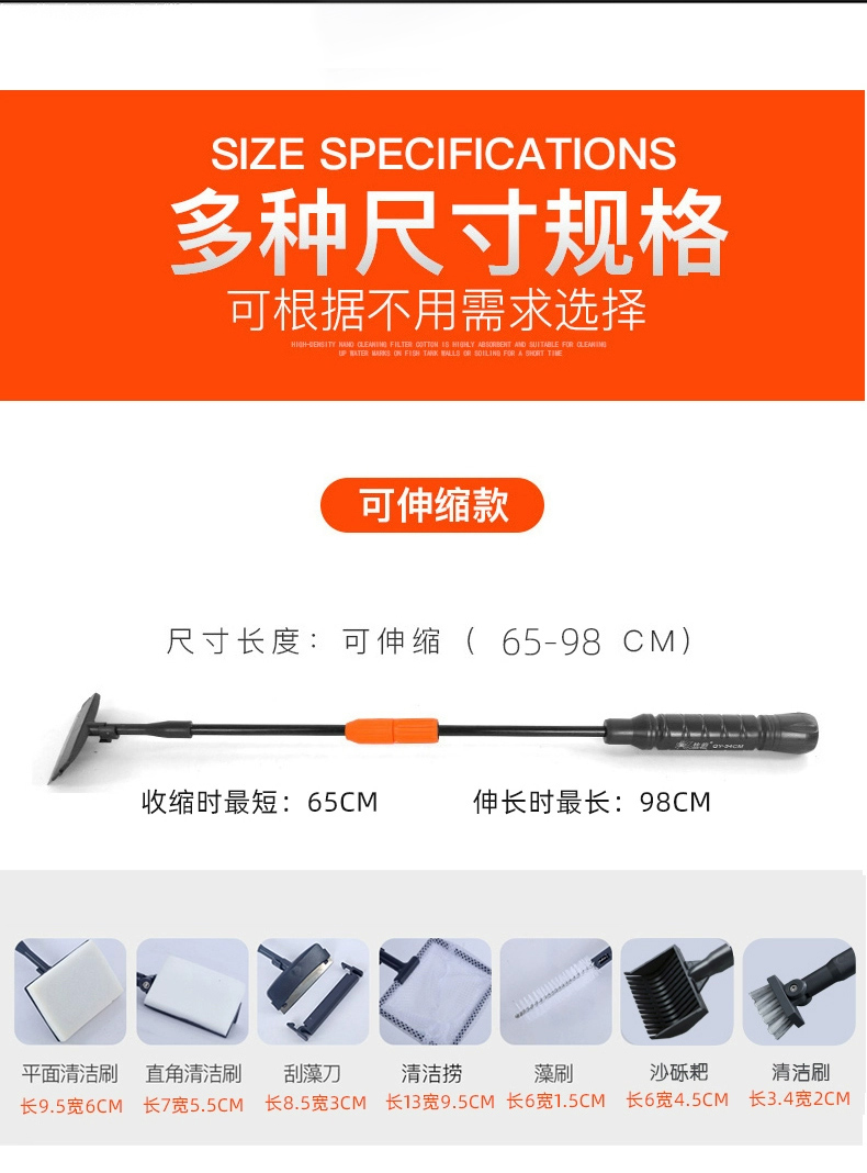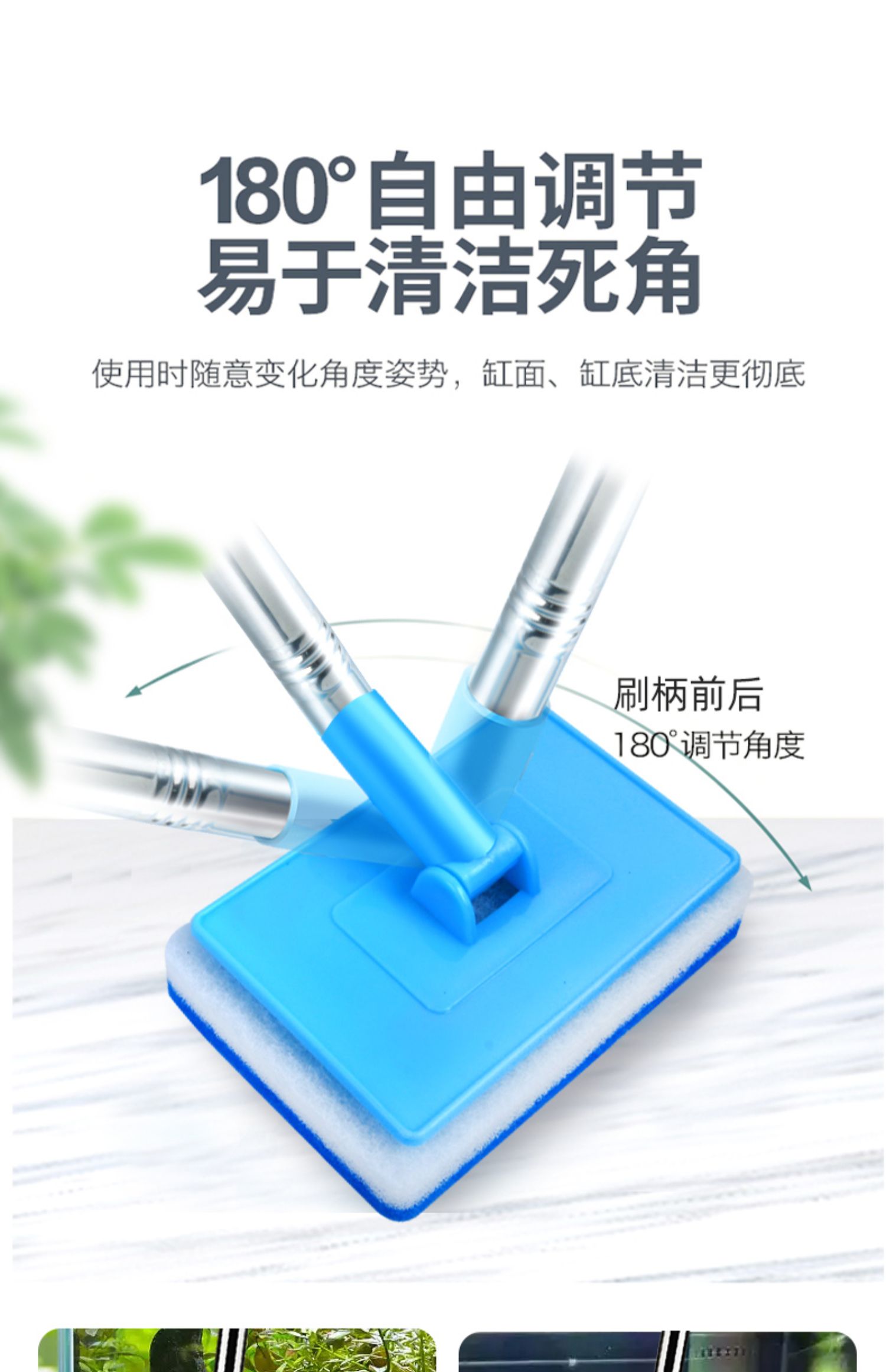 3MLE 수조 브러시 청소 긴 손잡이 데드 코너 없음 청소 도구 유리 내부 벽 청소 및 제거스토어 가기