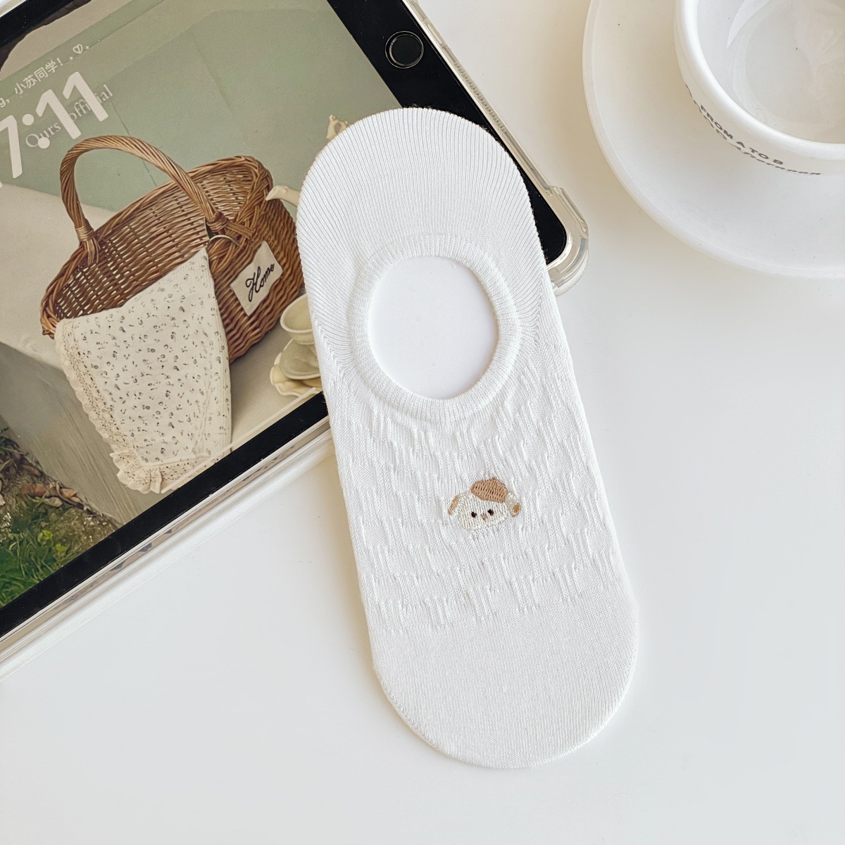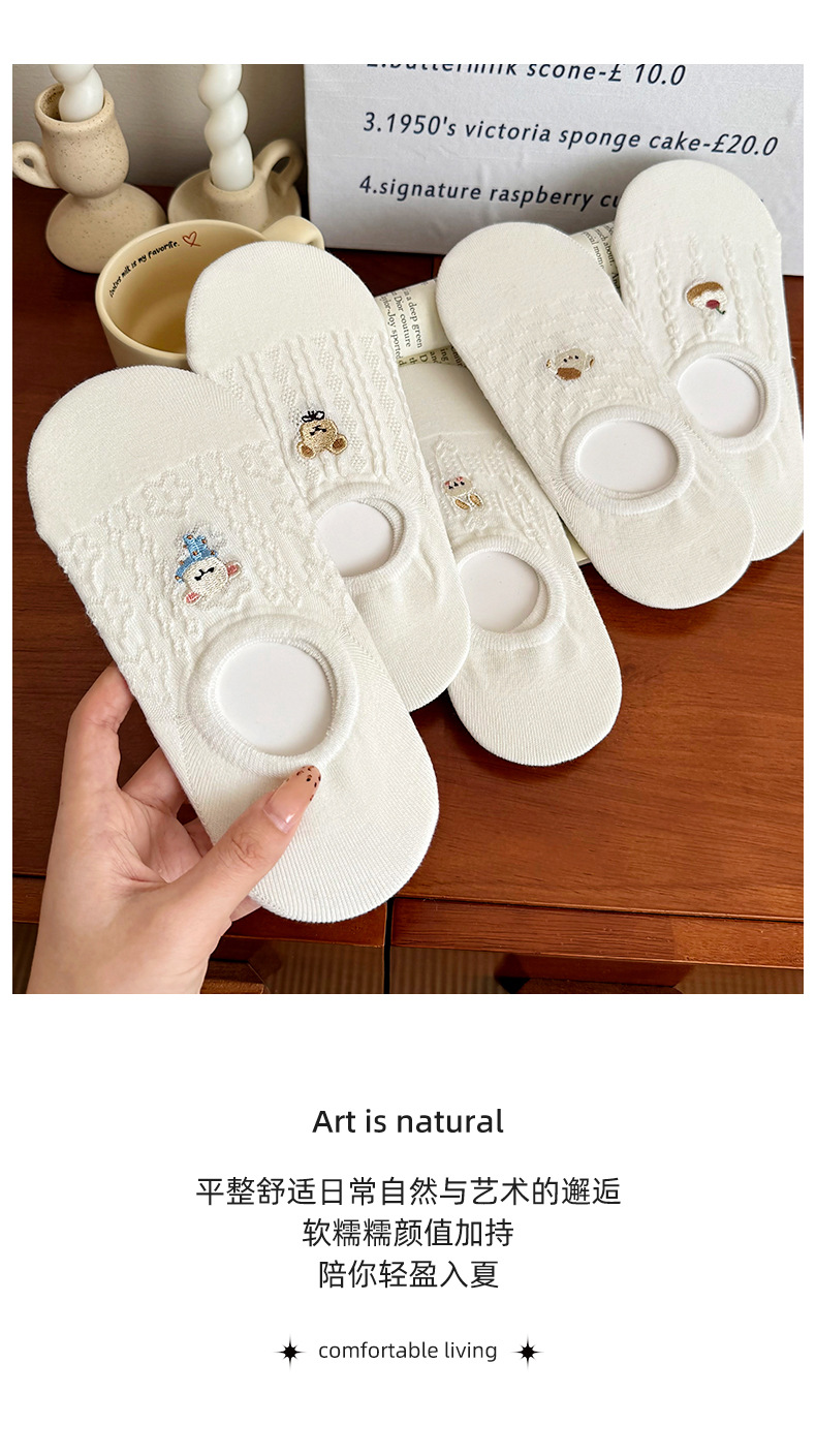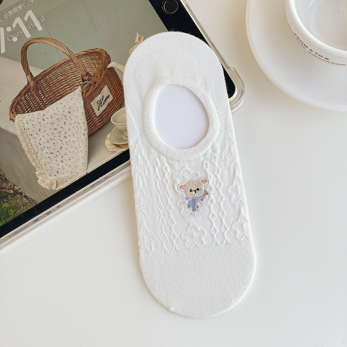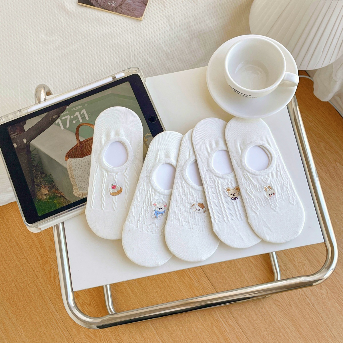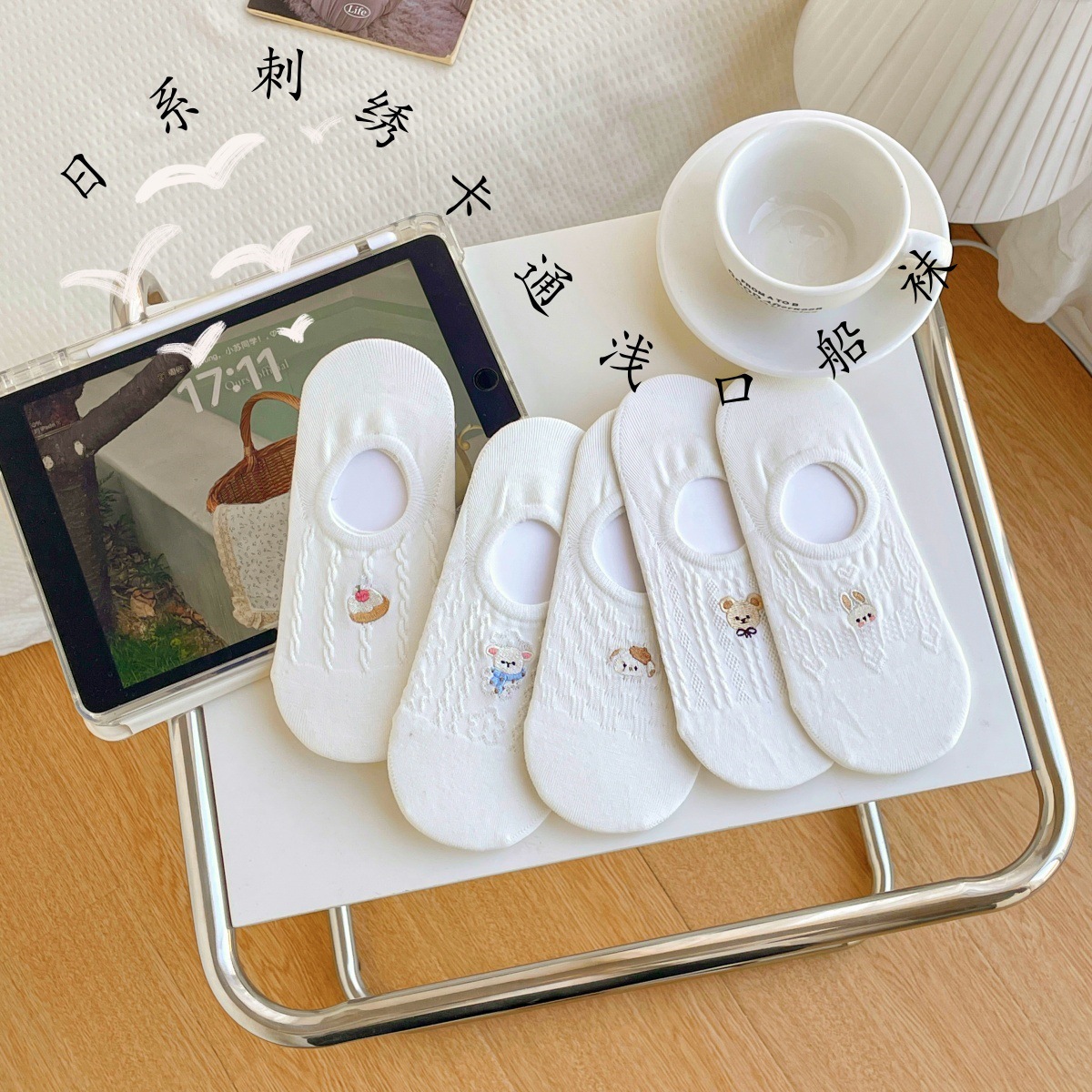 여성용 일본 자수 귀여운 만화 양말, 봄 여름 면 양말, 짧은 양말, 로우탑 펌프스 보이지 않는 양말, 떨어지지 않는 트렌디한 보트 양말스토어 가기