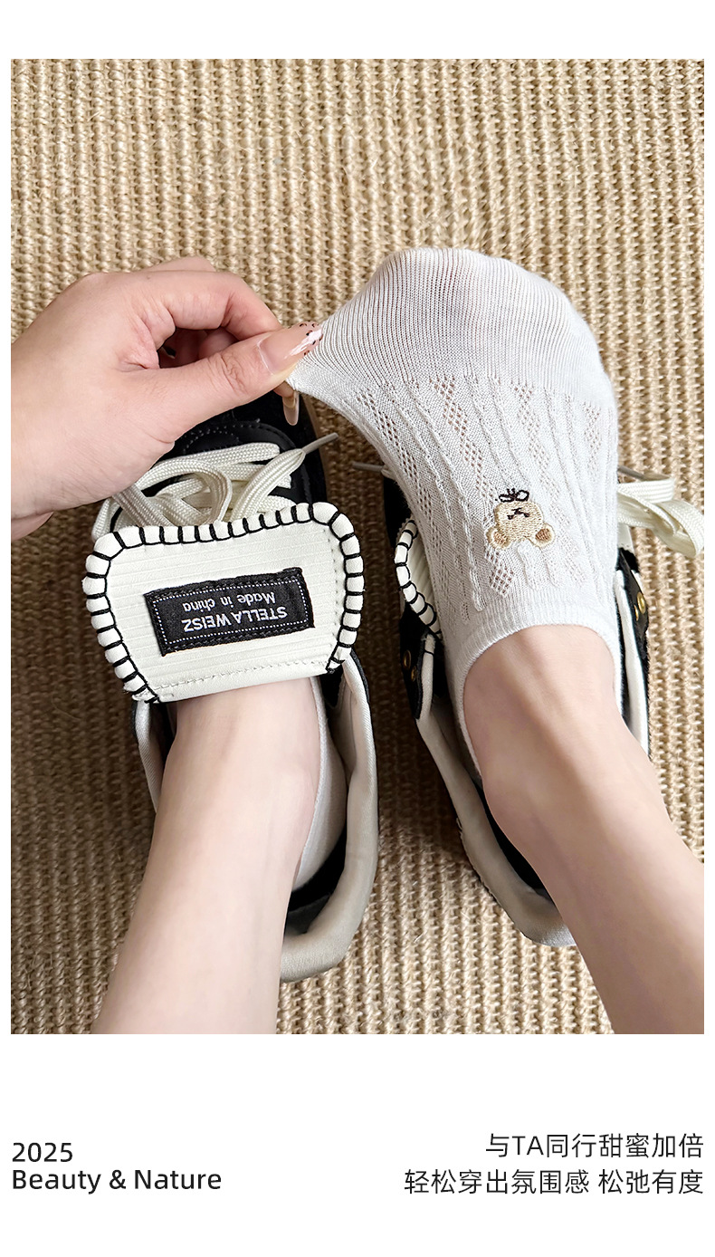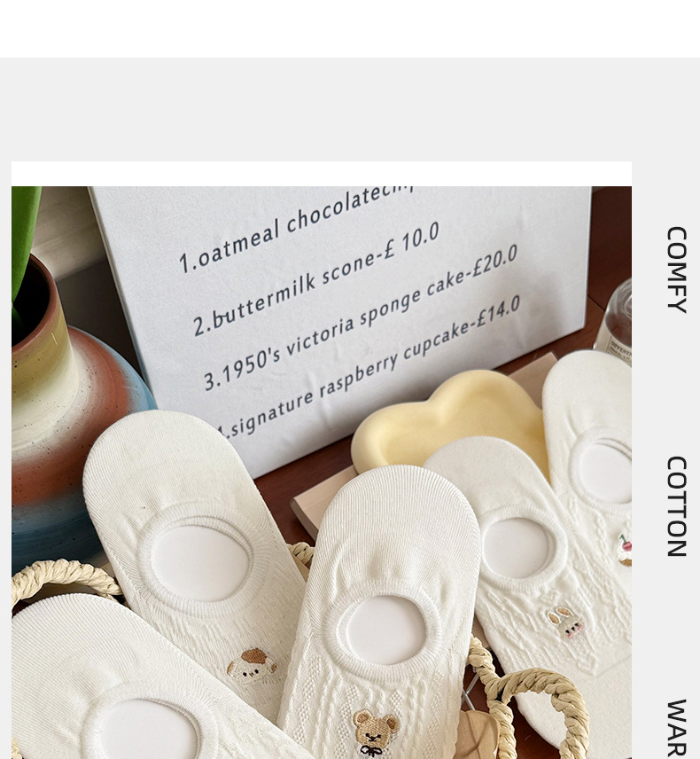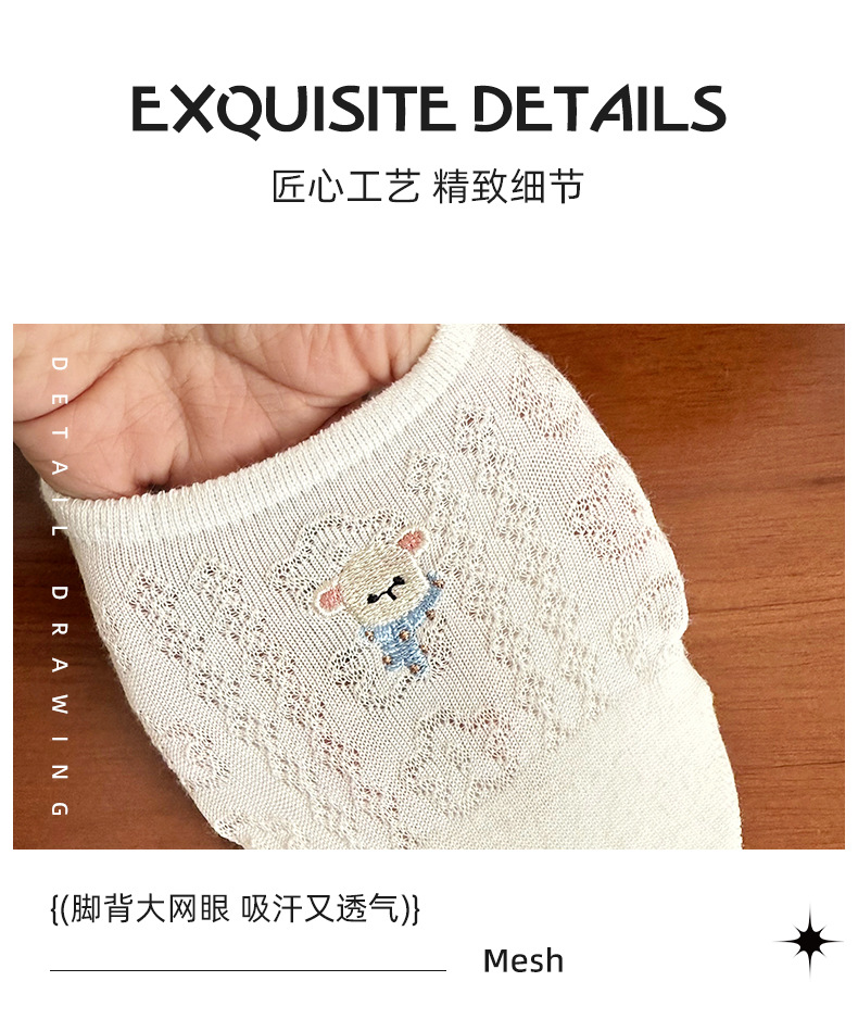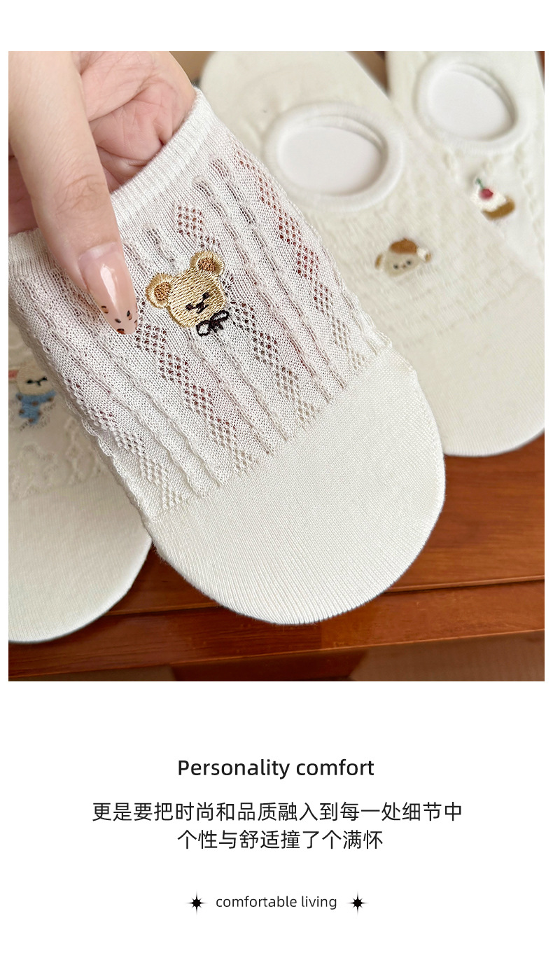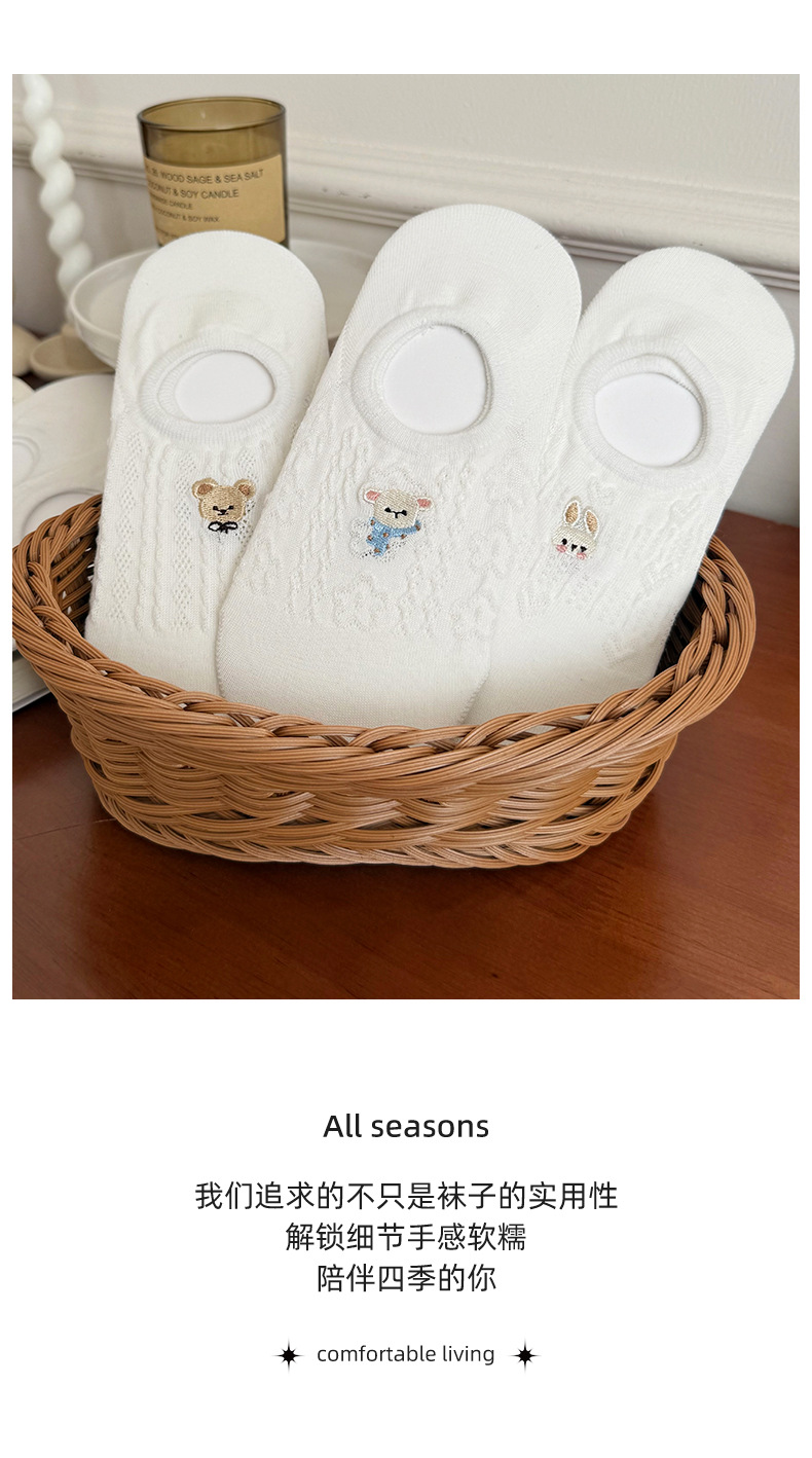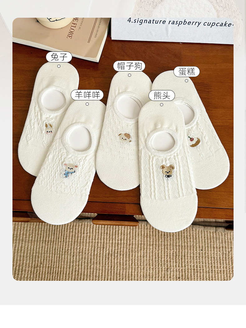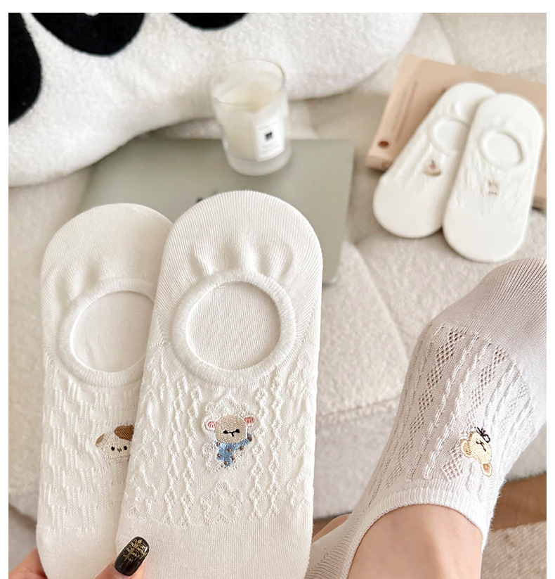 여성용 일본 자수 귀여운 만화 양말, 봄 여름 면 양말, 짧은 양말, 로우탑 펌프스 보이지 않는 양말, 떨어지지 않는 트렌디한 보트 양말스토어 가기
