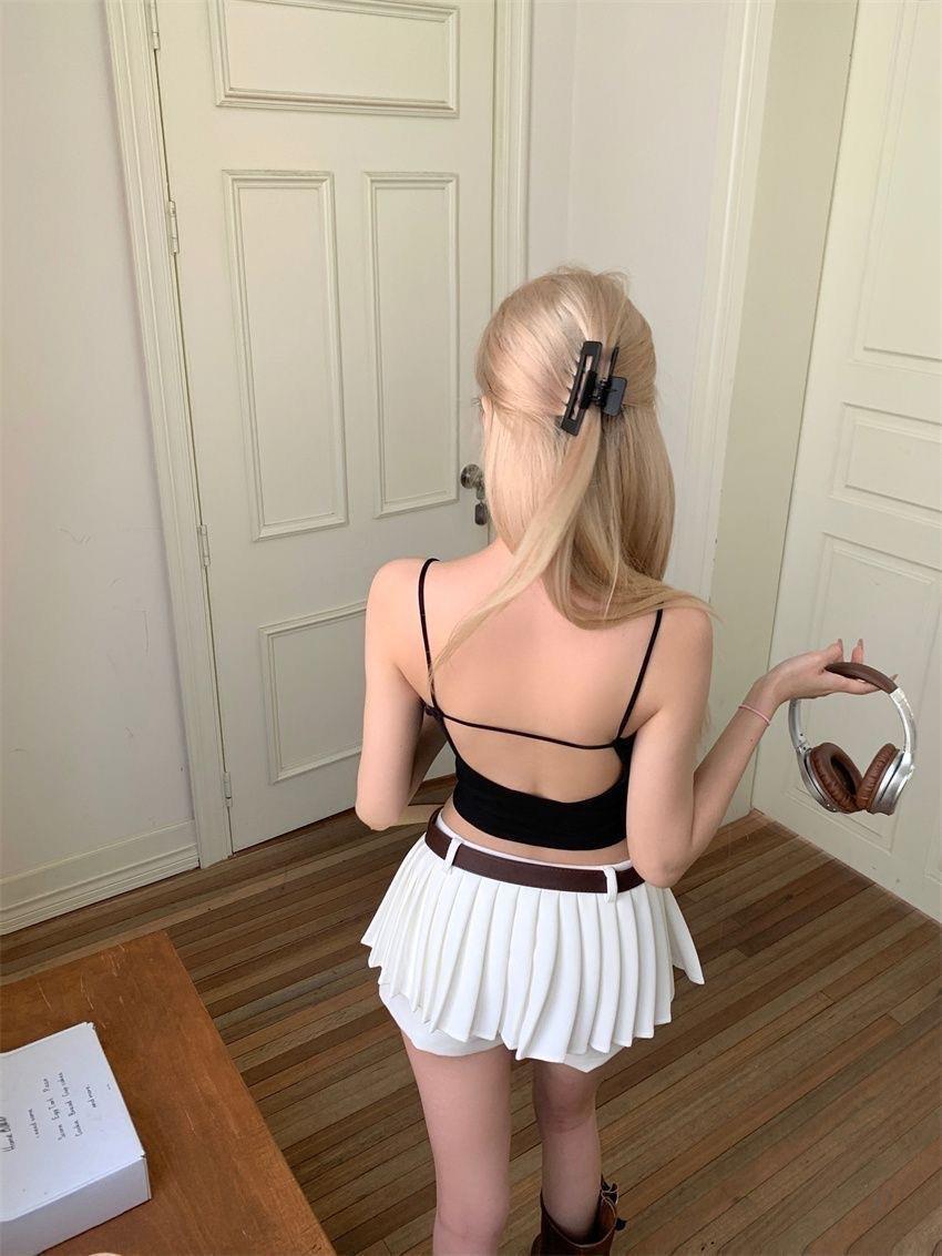 가슴 패드가 있는 핫걸, 등이 없는 캐미솔, 여성 여름 섹시한 아름다운 등 디자인, 아우터용 짧은 상의스토어 가기