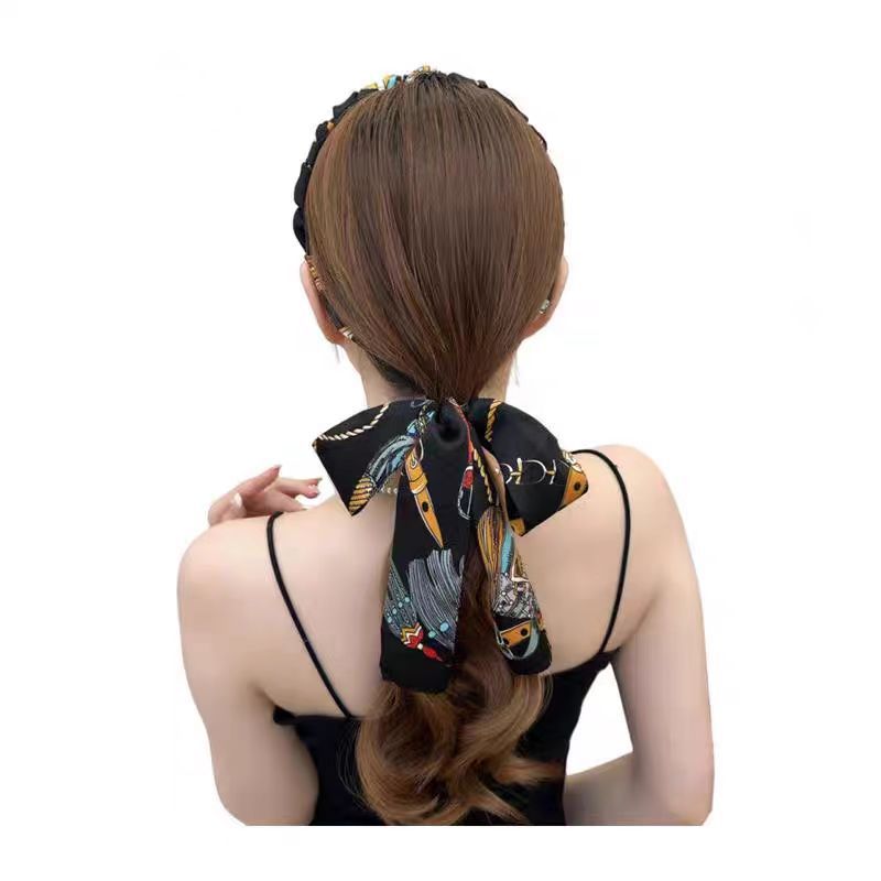 꽃 실크 스카프 리본 헤어 밴드 여성 프랑스 스타일 레트로 하이 레벨 스타일 헤어 밴드 와이드 원피스 헤어 밴드 프레스 헤어 클립 타이 헤어 리본