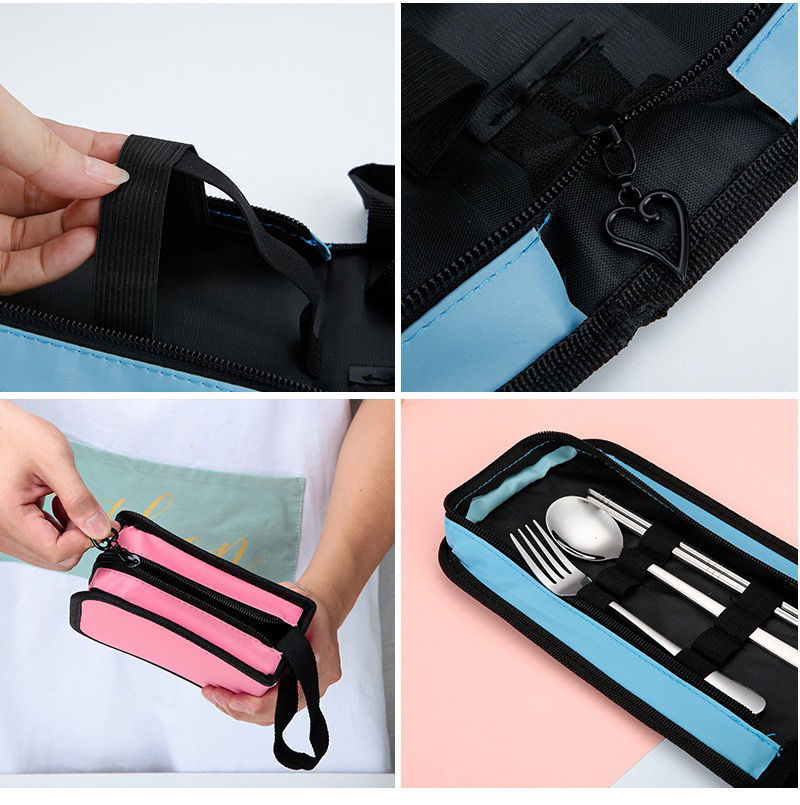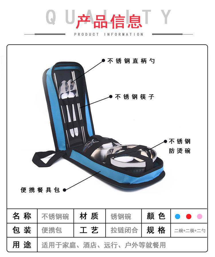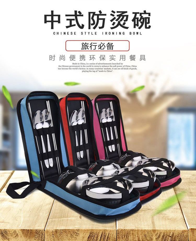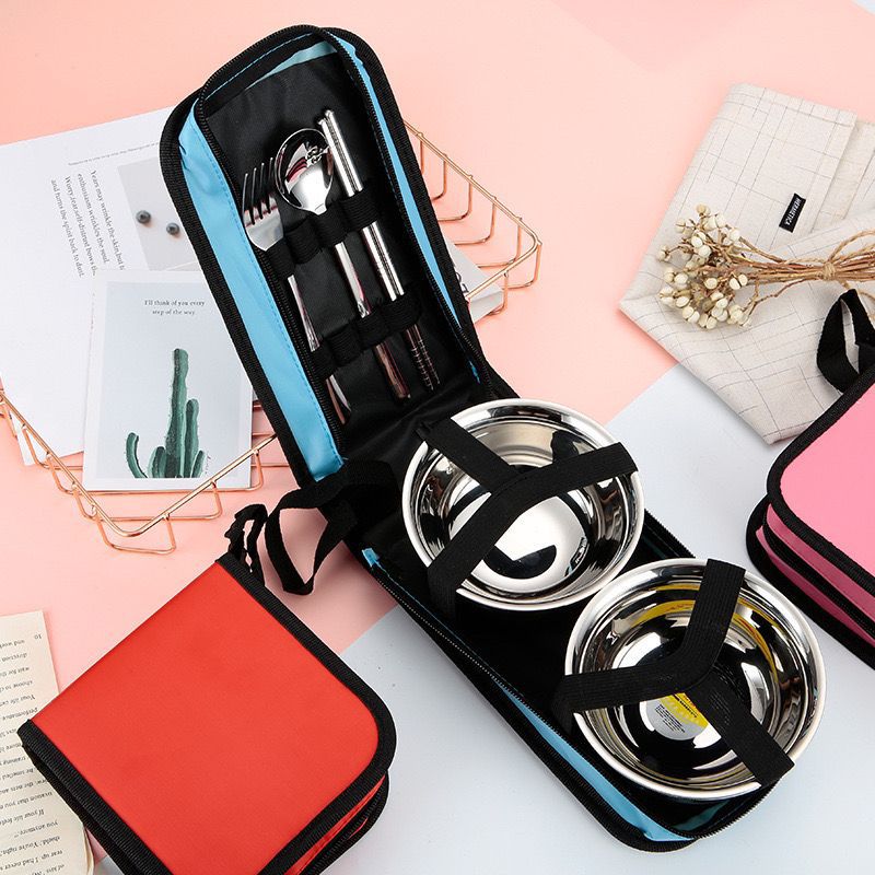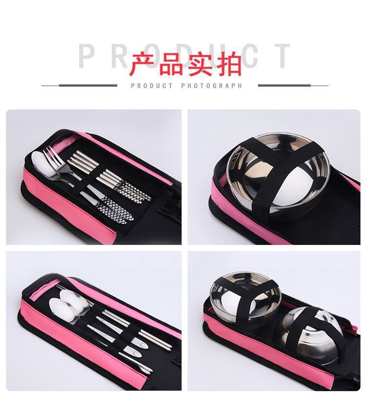 외출용 식기, 휴대용 스테인레스 스틸 캠핑 피크닉 가방, 여행용 식기, 어린이 및 성인용 그릇, 젓가락 및 숟가락 여행 세트