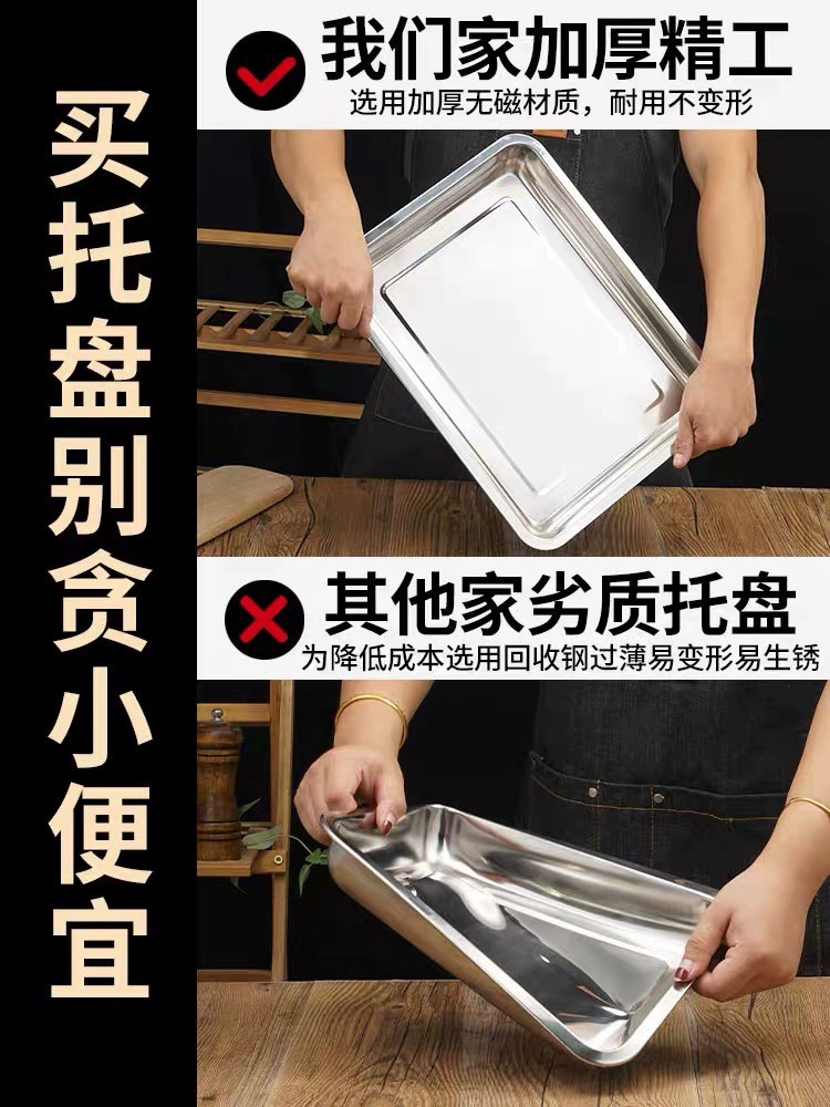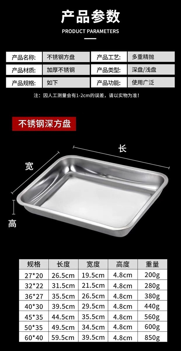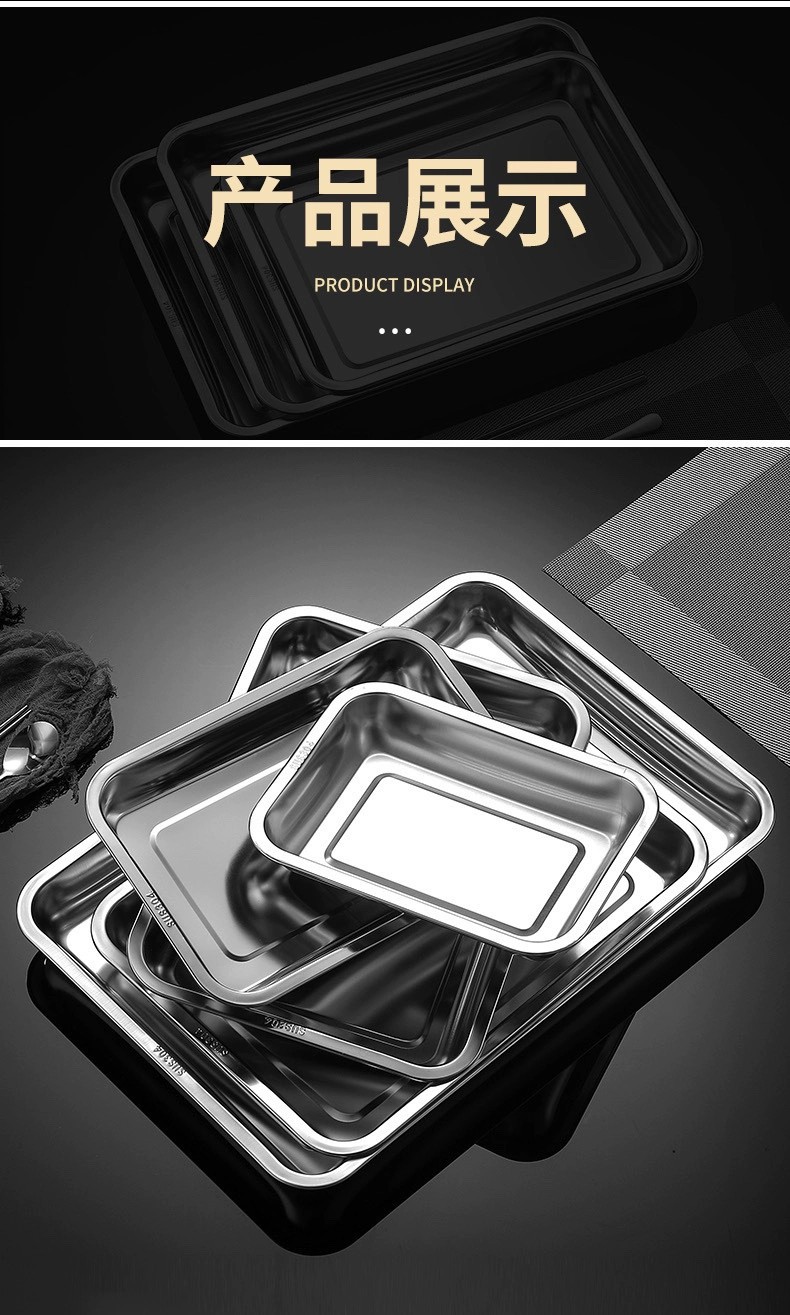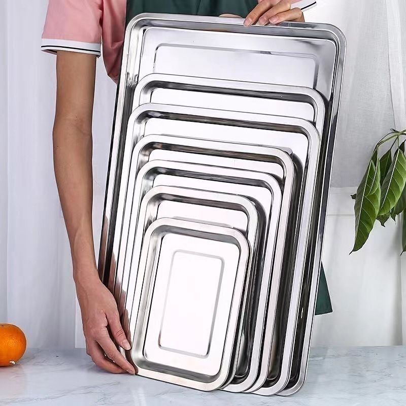 304 스테인레스 스틸 사각 접시 두꺼운 트레이 상업용 캔틴 레스토랑 스테인레스 스틸 밥 트레이 베이킹 팬 직사각형 평면 바닥스토어 가기