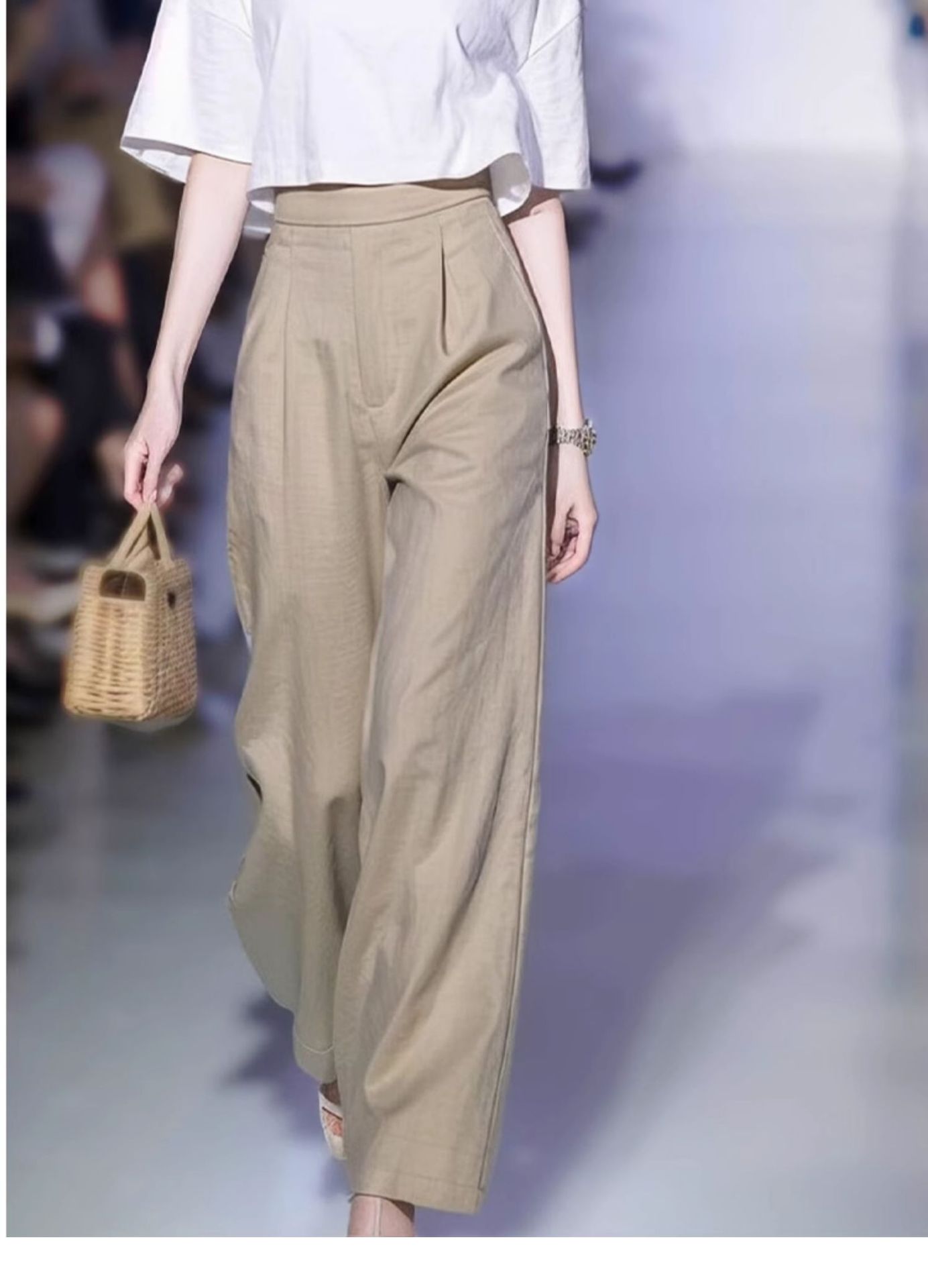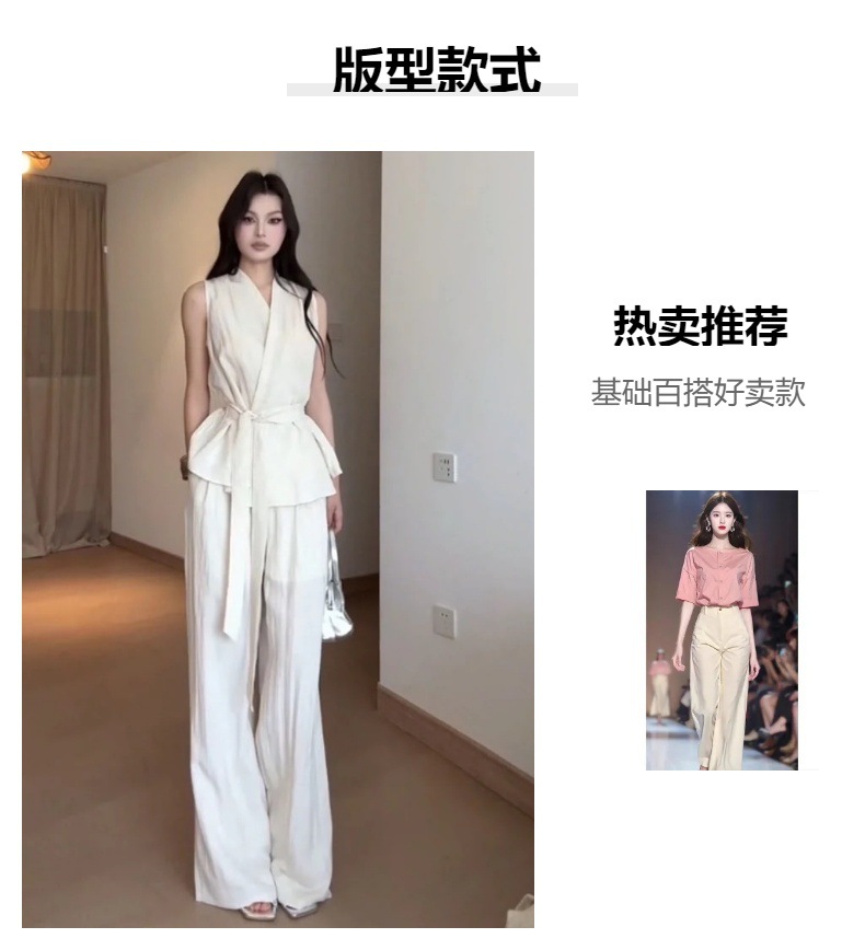 편안한 느낌의 세트 2025 여름 착용 짧은 소매 흰색 티셔츠 넓은 다리 바지 투피스 세트 튀긴 거리스토어 가기