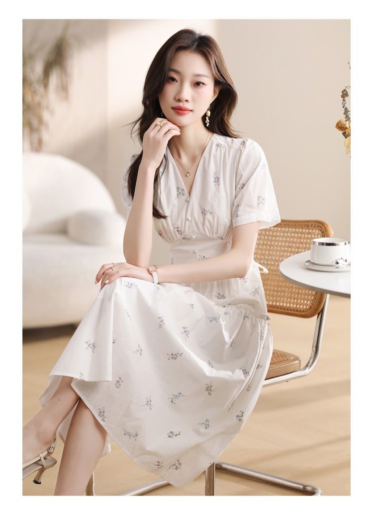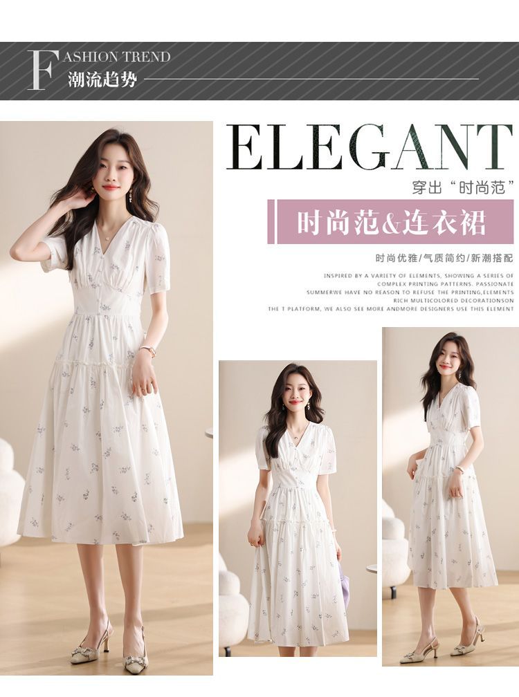 리얼 샷 티 브레이크 프랑스 꽃 원피스 여자 2025 여름 새로운 블랙 우아한 슬리밍 롱 스커트스토어 가기