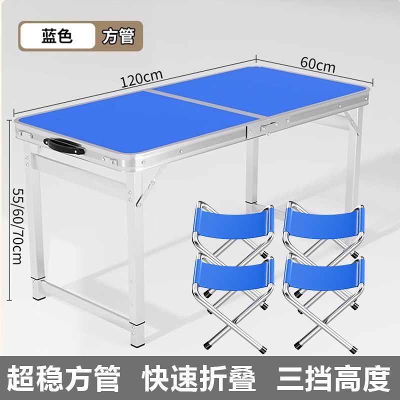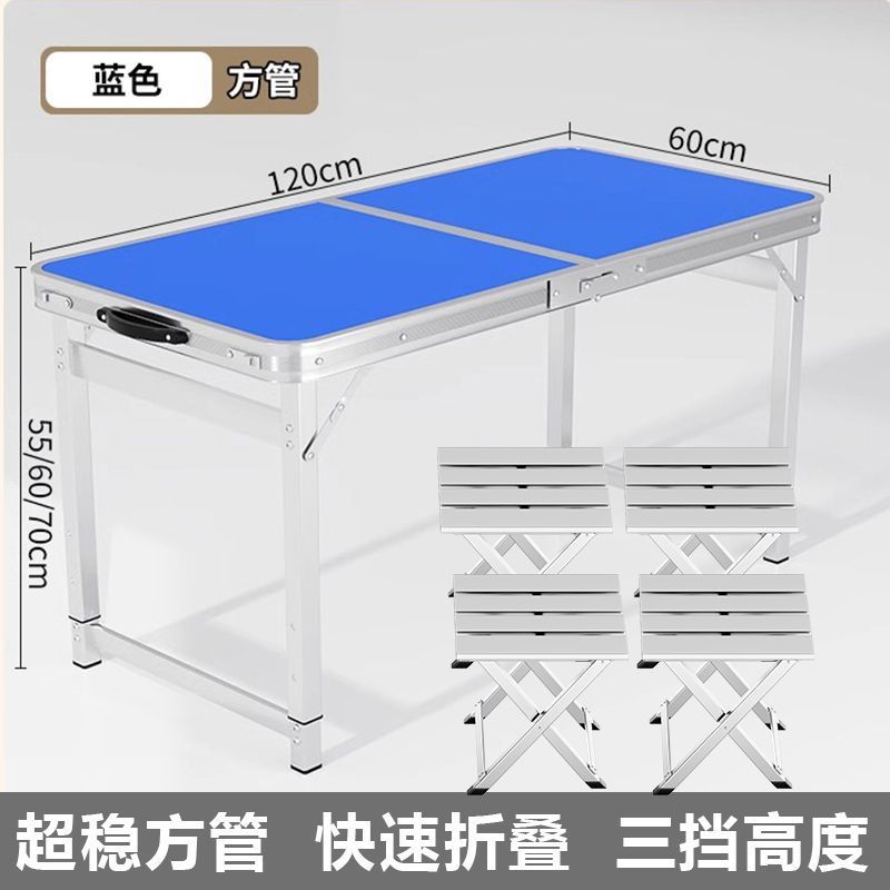 • Blue-120CM 대형 사각 튜브 테이블 + 알루미늄 스툴 4개