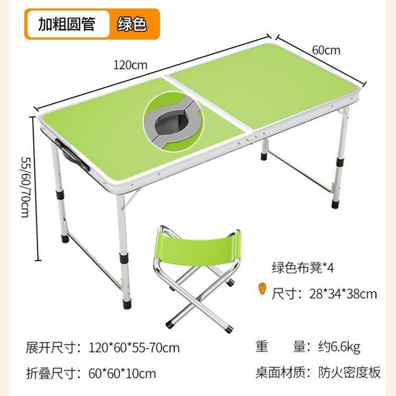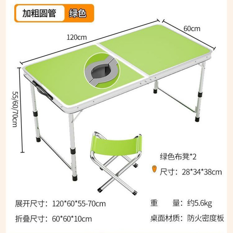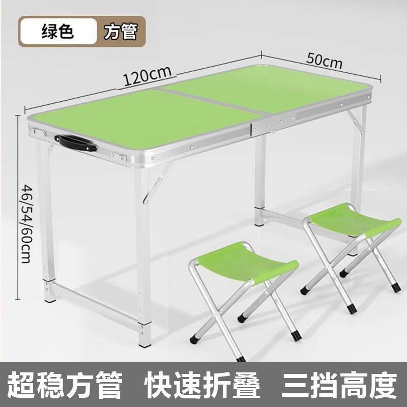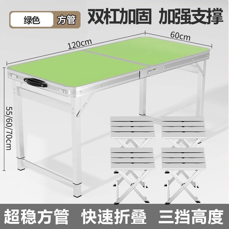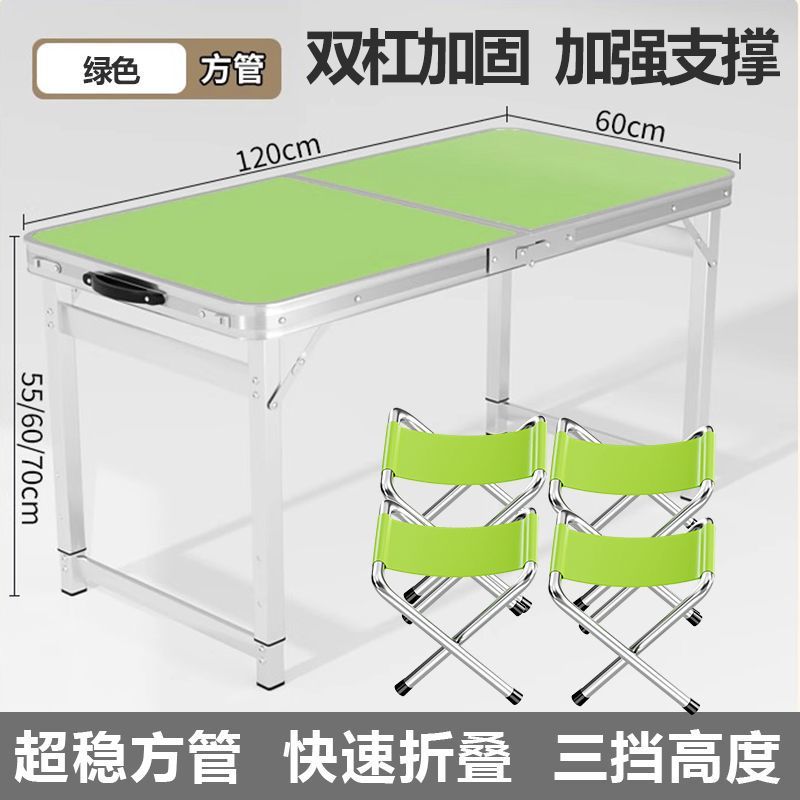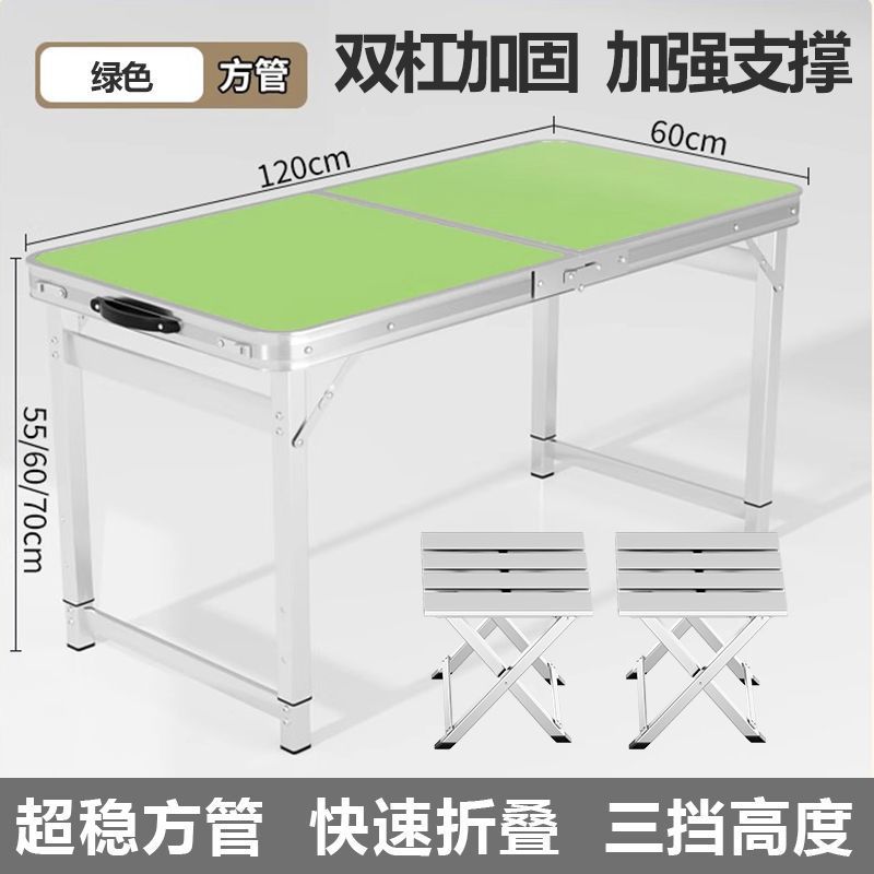 • 녹색-120CM 대형 사각형 튜브 테이블 + 알루미늄 의자 2개 + 우산 구멍