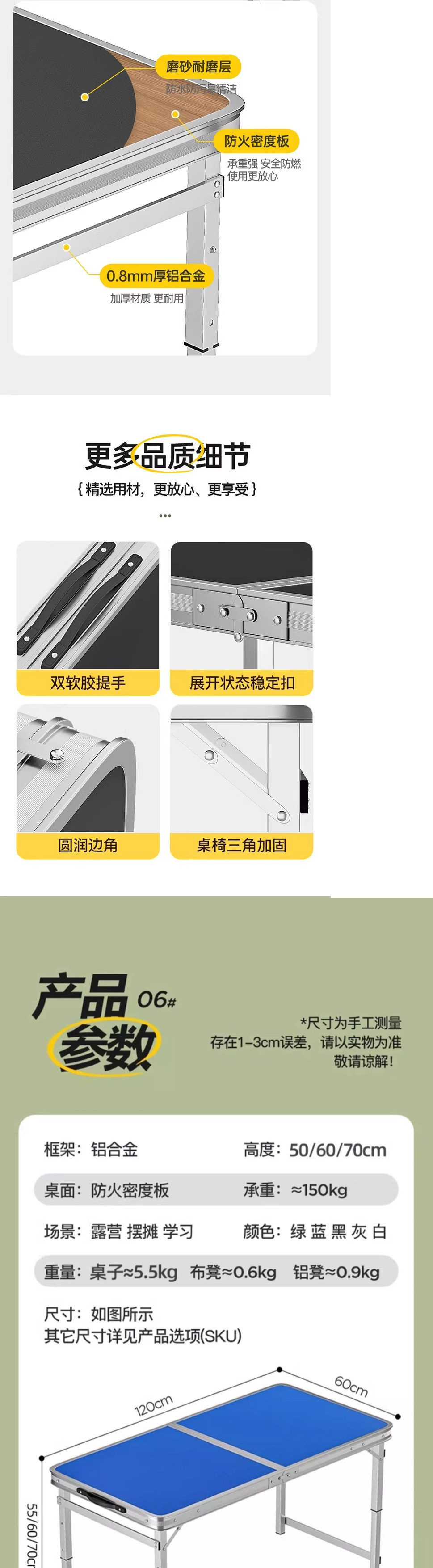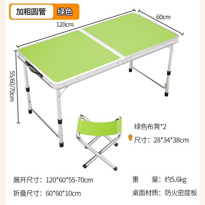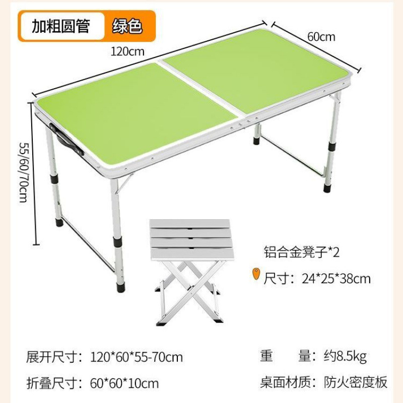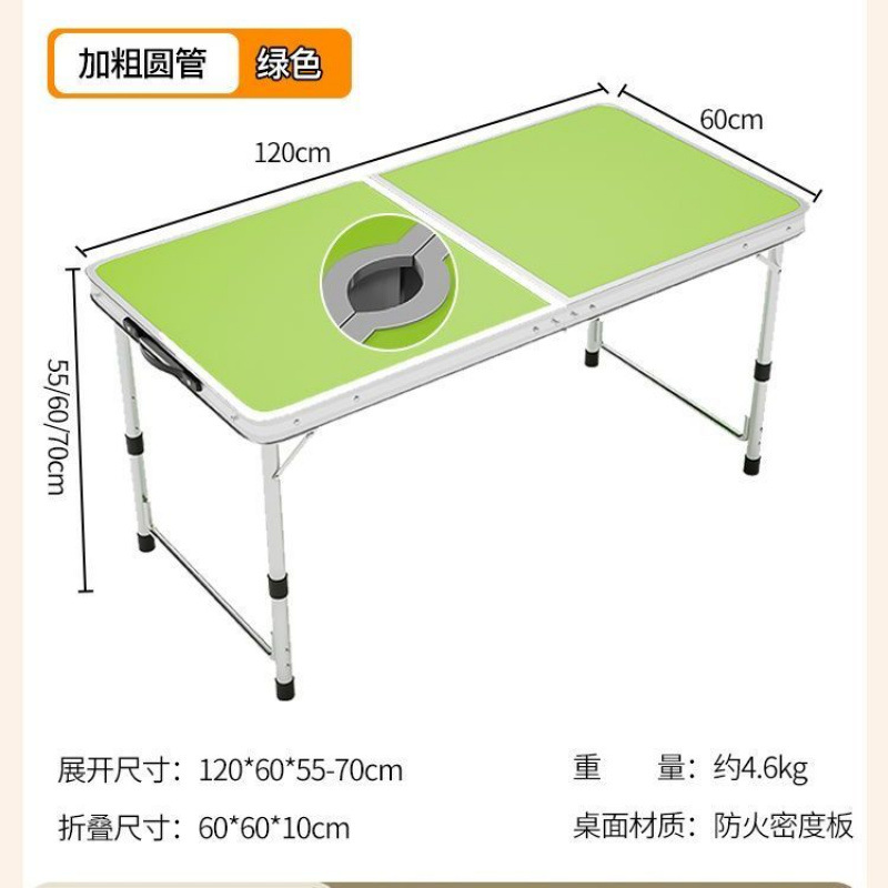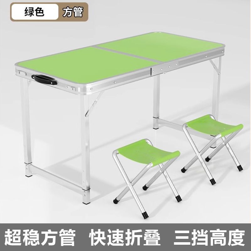 • 녹색-120CM 대형 사각형 튜브 테이블 + 알루미늄 의자 2개 + 우산 구멍