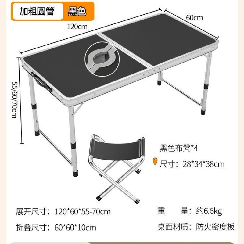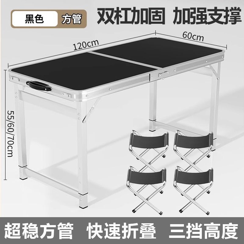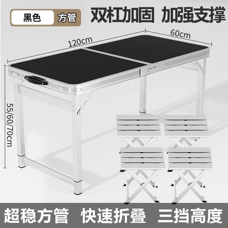 • 검정색 - 120CM 대형 사각형 튜브 테이블 + 알루미늄 스툴 4개 + 우산 구멍