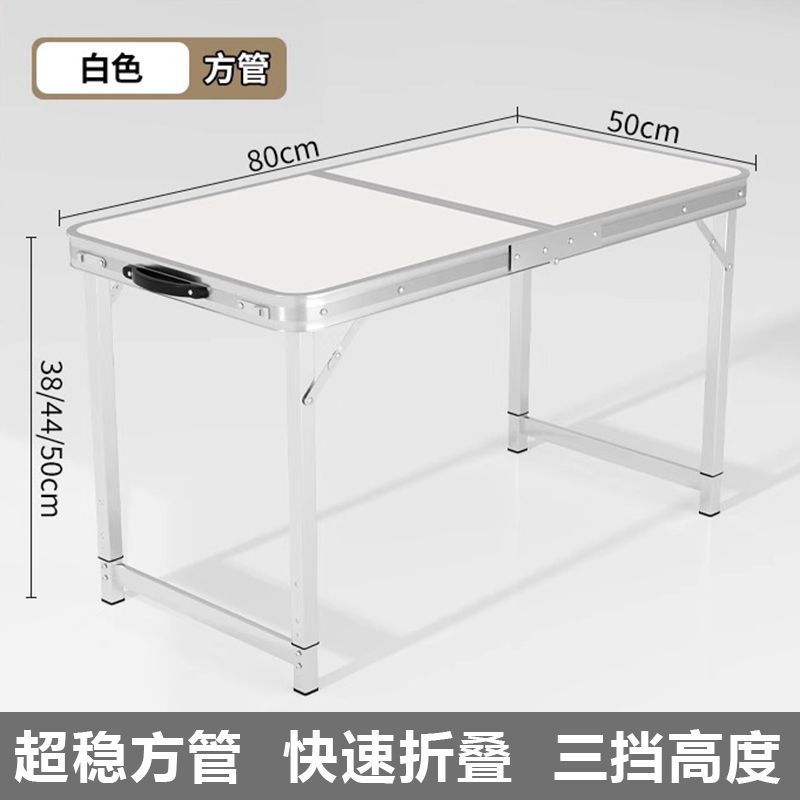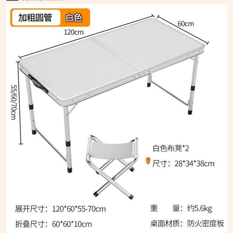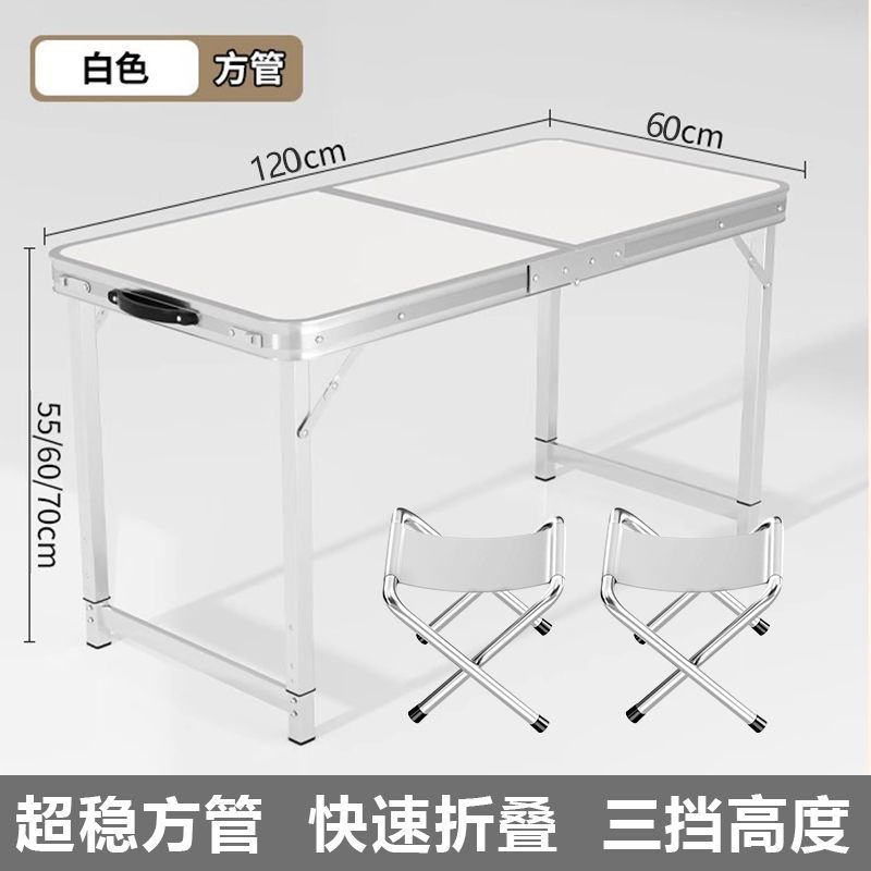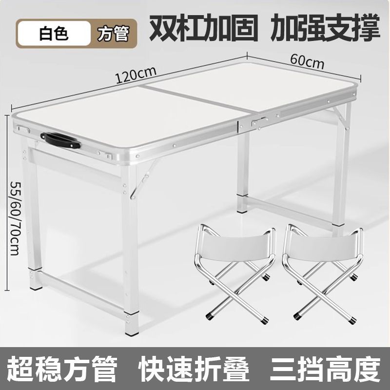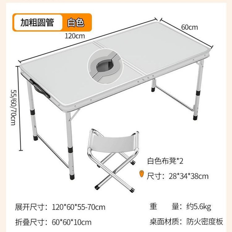 • 흰색-120CM 대형 사각형 튜브 테이블 + 알루미늄 의자 2개 + 우산 구멍