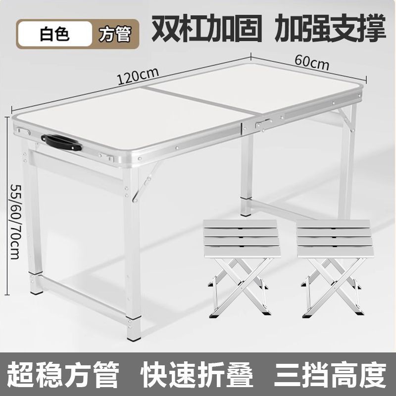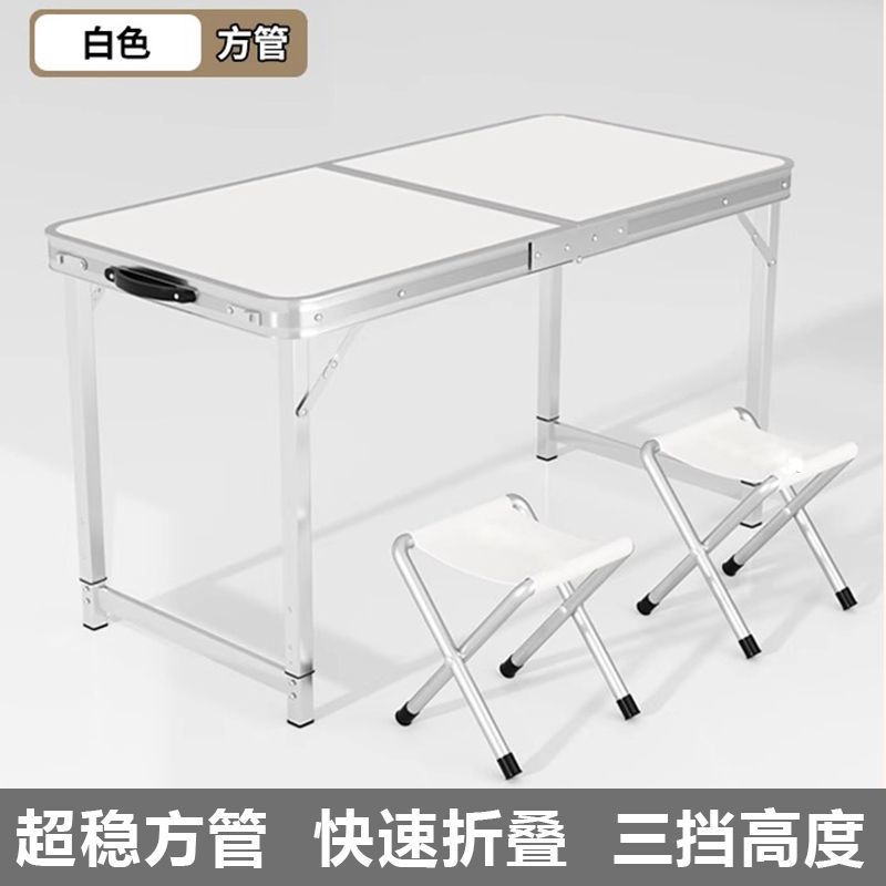 • 흰색-120CM 대형 사각 튜브 테이블 + 알루미늄 스툴 2개