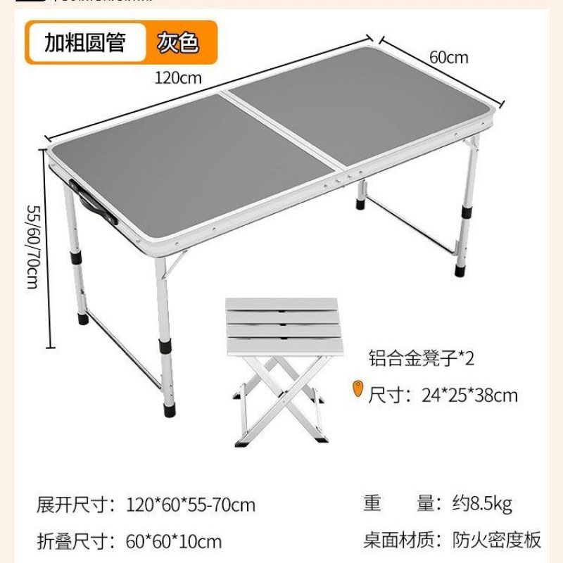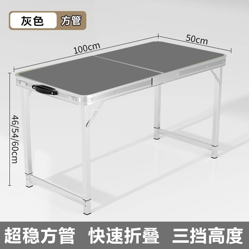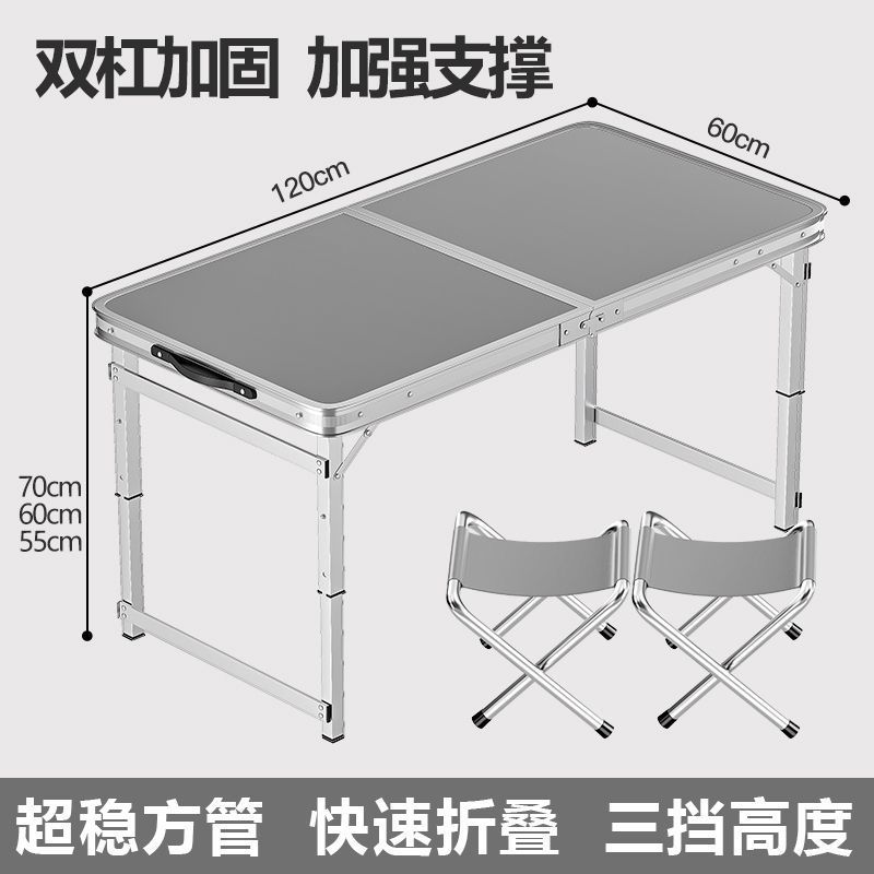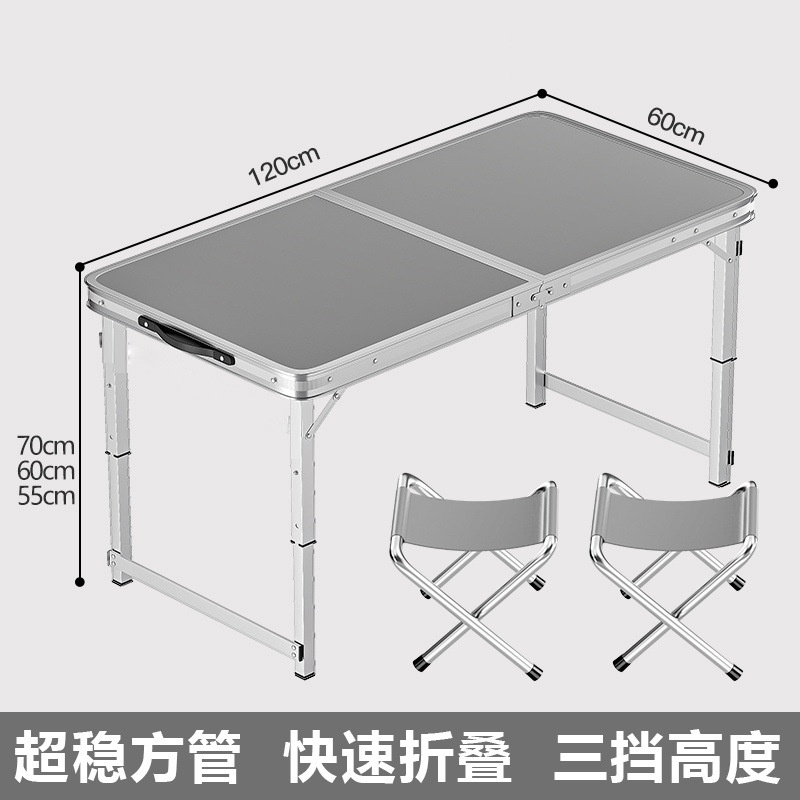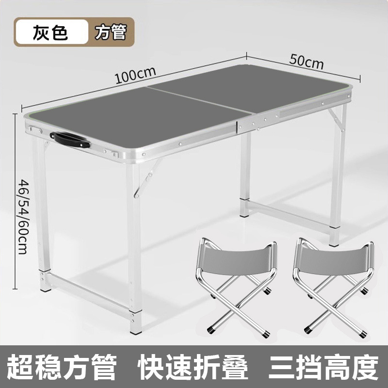 • 회색-120CM 대형 사각형 튜브 테이블 + 알루미늄 의자 2개