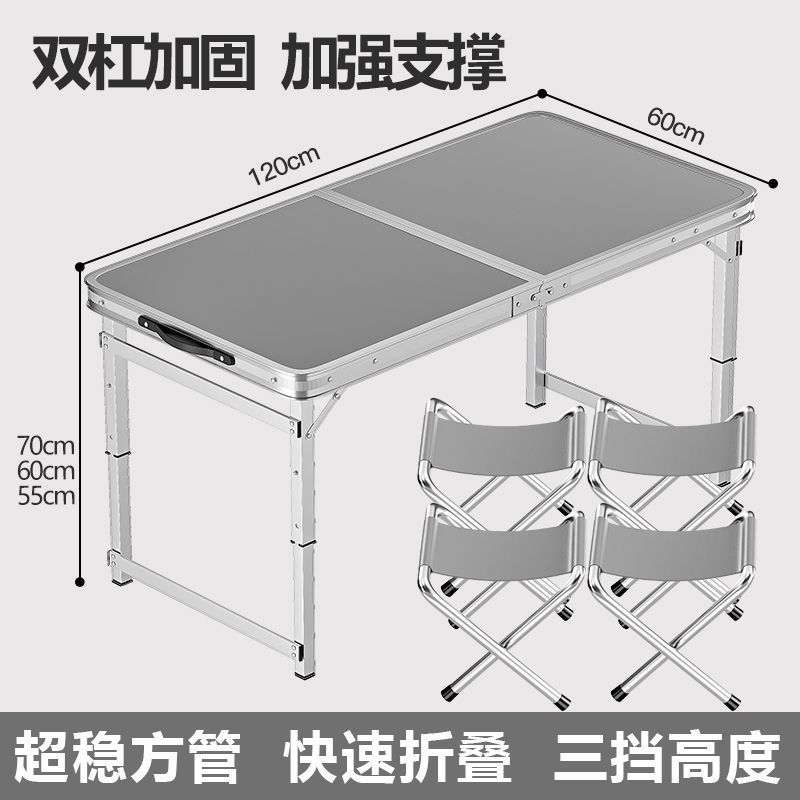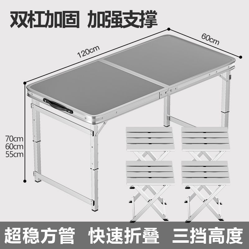• 회색-120CM 대형 사각형 튜브 테이블 + 알루미늄 의자 4개