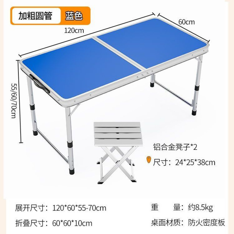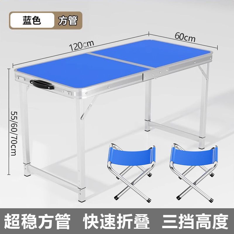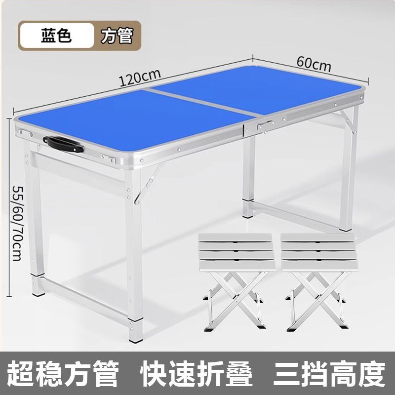 • Blue-120CM 대형 사각 튜브 테이블 + 알루미늄 스툴 2개