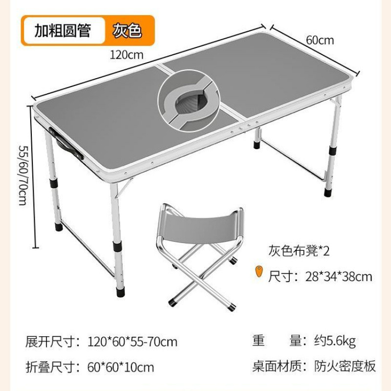 • 회색-120CM 대형 사각형 튜브 테이블 + 알루미늄 의자 2개 + 우산 구멍