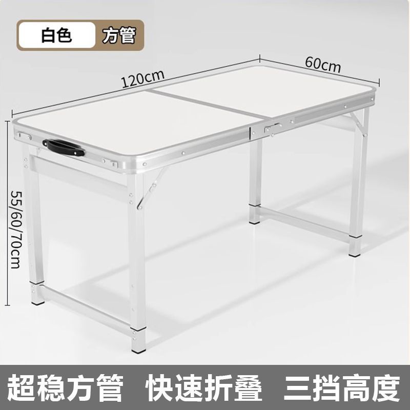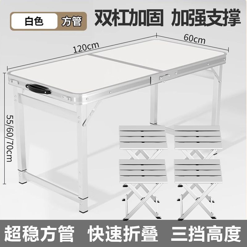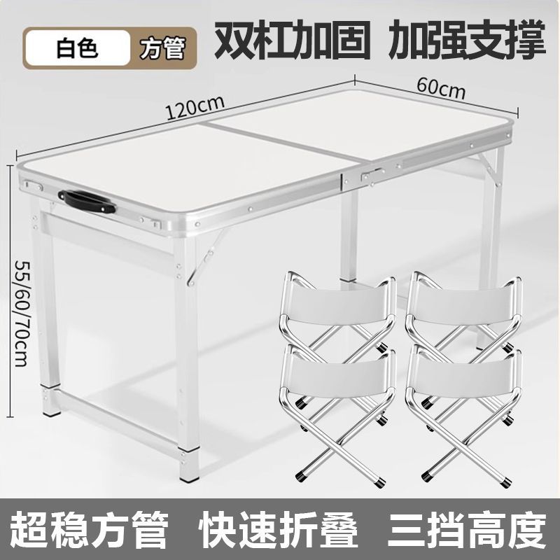 • 흰색-120CM 대형 사각형 튜브 테이블 + 알루미늄 의자 4개