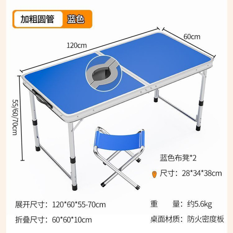 • Blue-120CM 대형 사각형 튜브 테이블 + 알루미늄 의자 2개 + 우산 구멍