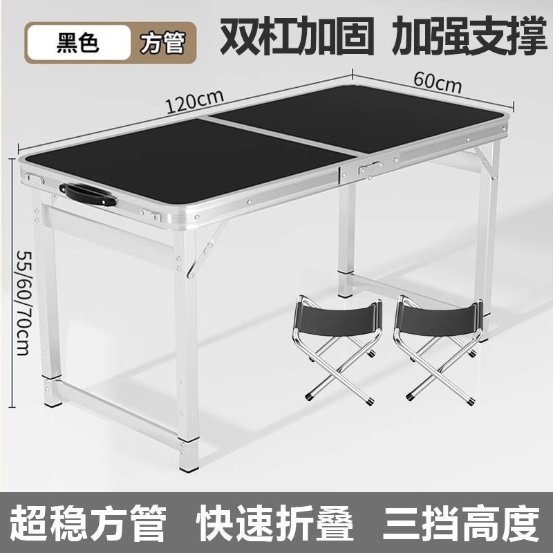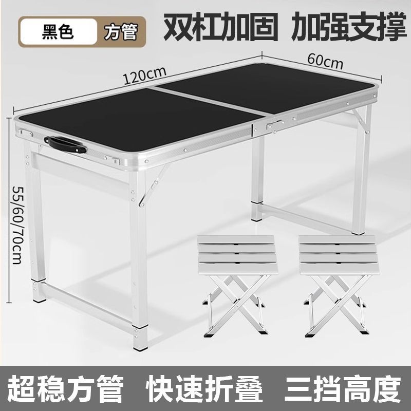 • 검정색 - 120CM 대형 사각형 튜브 테이블 + 알루미늄 스툴 2개 + 우산 구멍